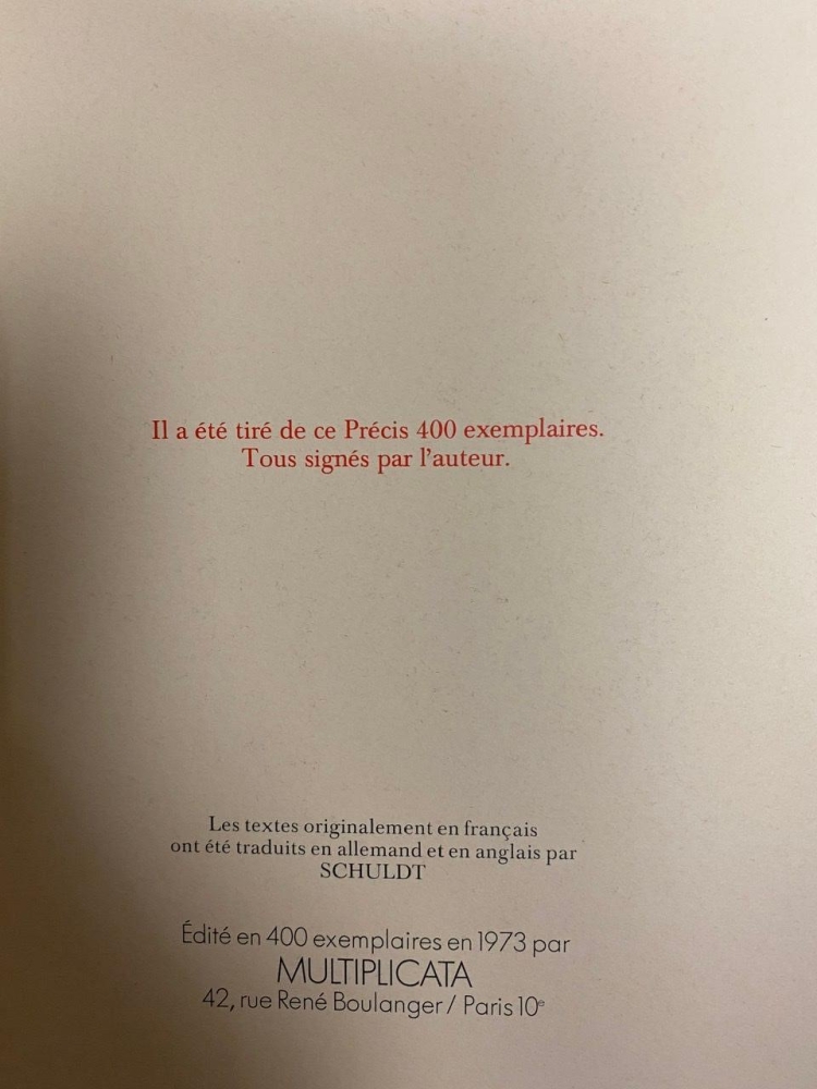 Bekende poëzie bundel door Marcel Broodthaers. Hiervan werden slechts 400 exemplaren gemaakt. De laatste pagina werd hangesigneerd door de kunstenaar. Verzekerde verzending of ophaling mogelijk.