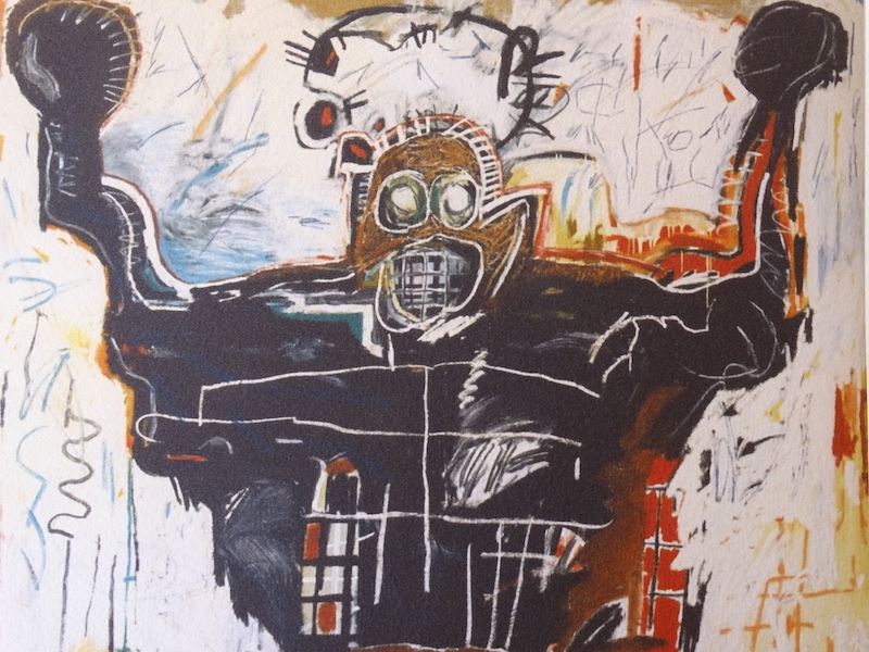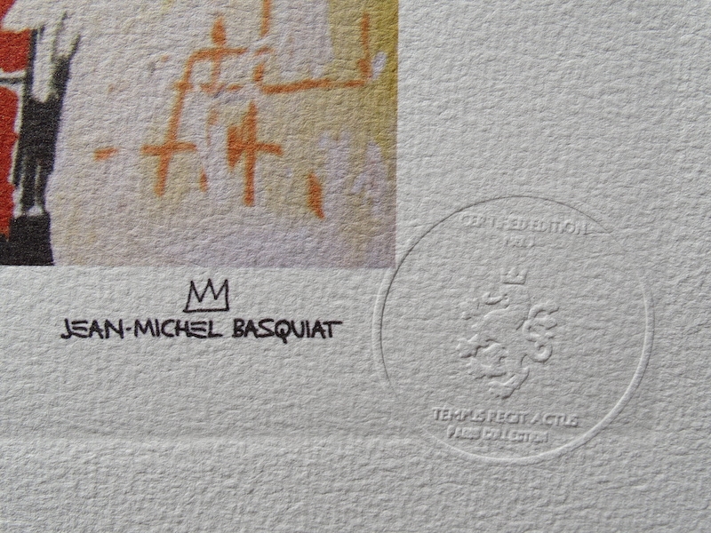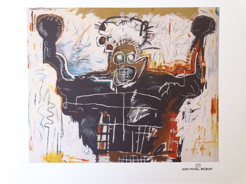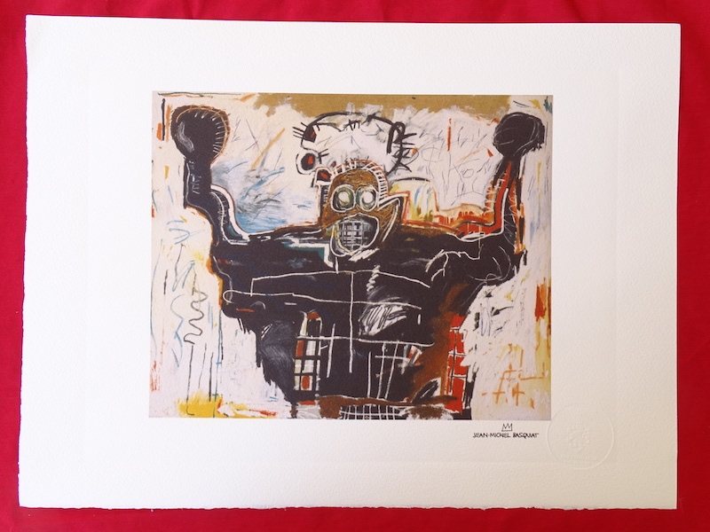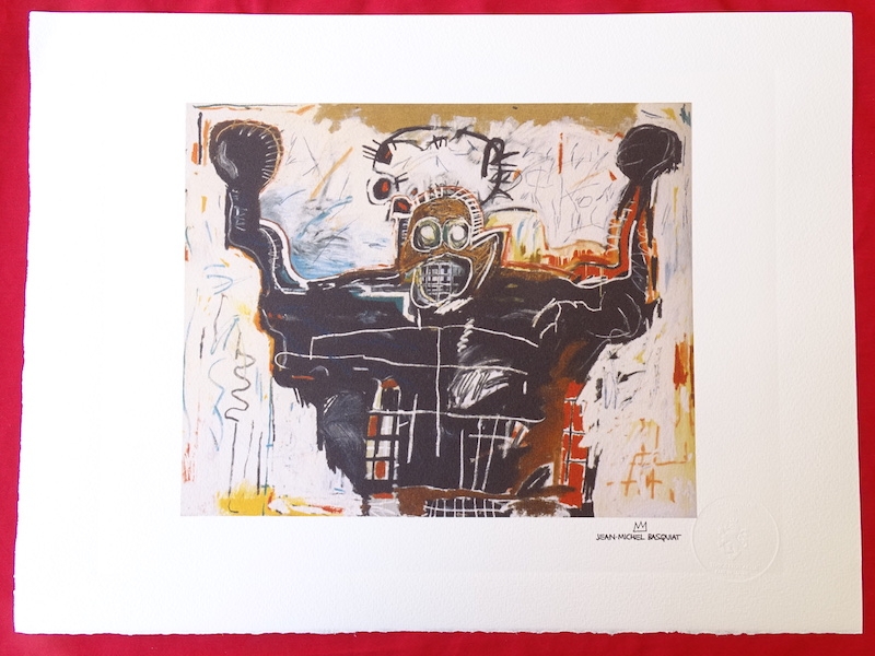Basquiat, litography, ca 38x28cm. Jean-Michel Basquiat was an American artist who rose to success during the 1980s as part of the Neo-expressionism movement. Basquiat first achieved fame as part of the graffiti duo SAMO, alongside Al Diaz, writing enigmatic epigrams in the cultural hotbed of Manhattan's Lower East Side during the late 1970s, where rap, punk, and street art coalesced into early hip-hop music culture. By the early 1980s, his paintings were being exhibited in galleries and museums internationally. At 21, Basquiat became the youngest artist to ever take part in documenta in Kassel. At 22, he was one of the youngest to exhibit at the Whitney Biennial in New York. The Whitney Museum of American Art held a retrospective of his artwork in 1992.