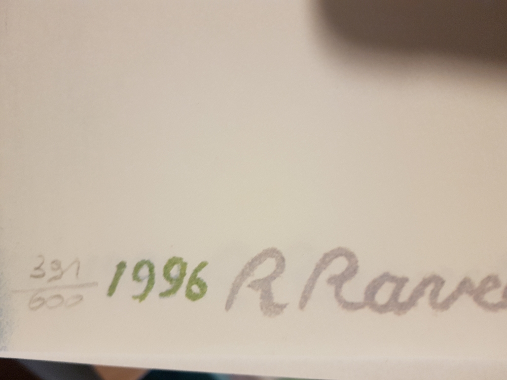 Roger RAVEEL (Machelen 1921 - Deinze 2013) Graficus, schilder, tekenaar, die dit jaar 100 jaar zou geworden zijn. Een, in een genummerde oplage van 600 exemplaren, uitgegeven zwart- wit offsetdruk en kleurenzeefdruk van een collage met het portret van Georges Peirs. Deze was burgemeester van de gemeente Zulte(België) waar Roger Raveel geboren was. Machelen-aan-de-Leie is een deelgemeente van Zulte. Hij was er burgemeester van 1970 tot 2006. Het werk is in de druk gesigneerd, handtekening maakt deel uit van het werk: nr 446/600.