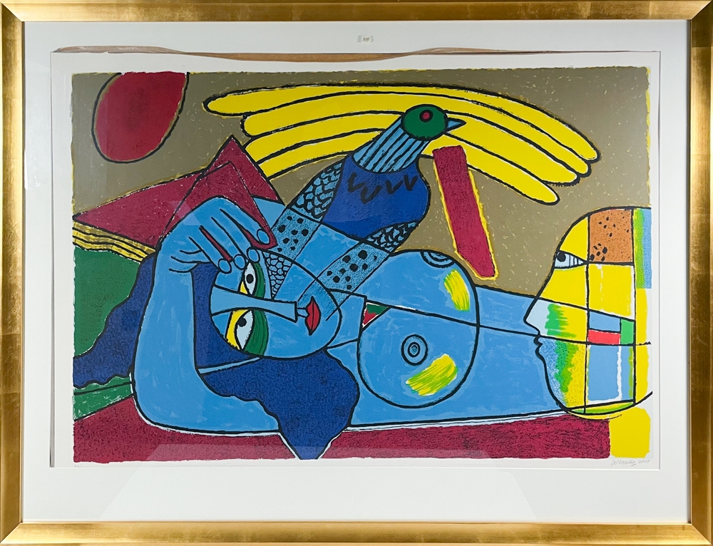 Zeer mooie en grote kleurenlithografie van Guillaume Corneille. Het werk werd slechts uitgebracht op 25 exemplaren waarvan dit nummer 24 is. Het werk is gesigneerd en genummerd met potlood. Het werk is mooi ingelijst.