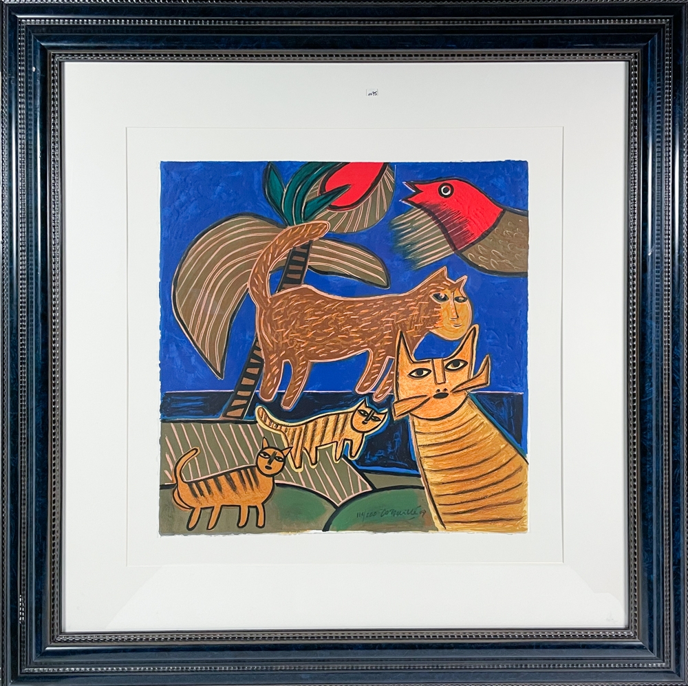 Mooie kleurenlithografie van Guillaume Corneille. Het werk is gesigneerd en genummerd 116/200. Het werk is ingelijst.
