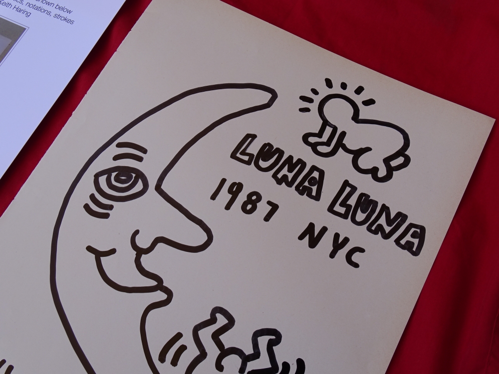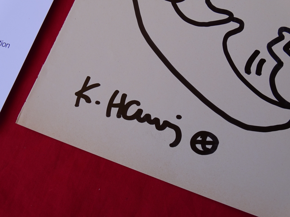 Keith Haring (attributed), ink drawing Keith Allen Haring (May 4, 1958 February 16, 1990) was an American artist whose pop art emerged from the New York City graffiti subculture of the 1980s. His animated imagery has "become a widely recognized visual language". Much of his work includes sexual allusions that turned into social activism by using the images to advocate for safe sex and AIDS awareness. In addition to solo gallery exhibitions, he participated in renowned national and international group shows such as documenta in Kassel, the Whitney Biennial in New York, the São Paulo Biennial, and the Venice Biennale. The Whitney Museum held a retrospective of his art in 1997.