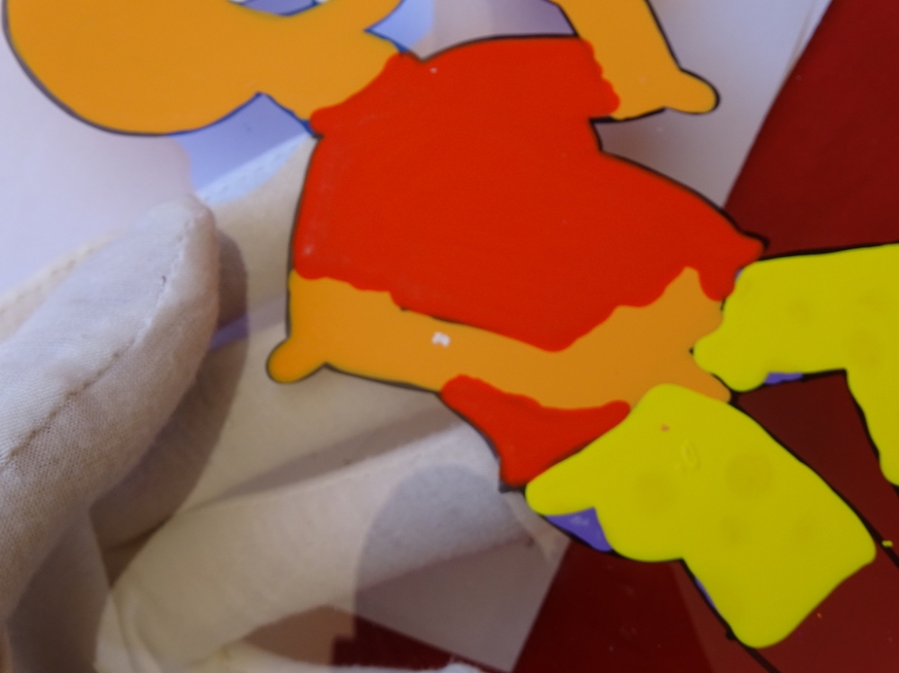 Het stuk meet ongeveer 31,5 x 26,5 cm. Dit is een authentieke handgeschilderde animatie gemaakt door Keith Haring (D 1990) voor gebruik bij de productie van een geanimeerde advertentie in de show "Sesamstraat", deze tekening is uniek in de wereld. https://www.youtube.com/watch?v=N3ygSVpRkC4 Deze cellulo maakte deel uit van een cartoon gemaakt voor kindertelevisie in 1991 en uitgezonden op "Sesamstraat". De cel is gemaakt vóór de dood van Haring in 1990. Fotokaarten en een kopie van het Count 10-filmstoryboard inbegrepen. Keith Haring was een van de belangrijkste straat- en graffitikunstenaars van het einde van de 20e eeuw. Zijn inzet bracht straatkunst internationaal onder de aandacht, mede dankzij de politieke en sociale boodschappen die via zijn werken werden overgebracht.