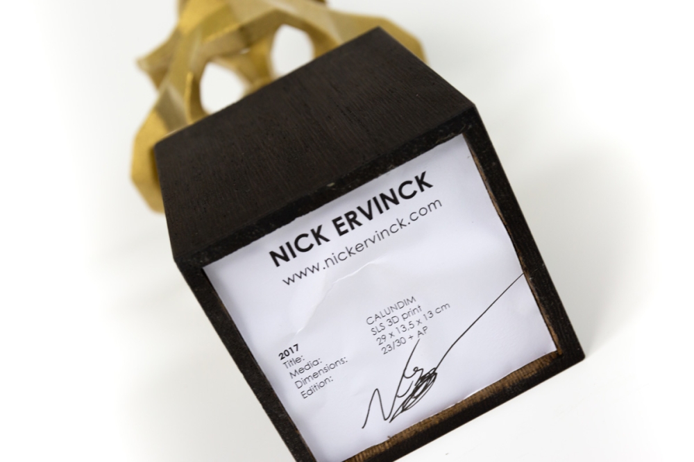 Nick Ervinck is stilaan een begrip aan het worden in het West-Vlaamse. Met zijn veelal organisch aandoende sculpturen slaagt hij er steeds in een brug te slaan tussen het fysieke en het digitale. Hij maakt gebruik van hedendaagse hulpmiddelen en methodes zoals 3d-printing om sommige van zijn sculpturen te realiseren, dit lot is hier een uitstekend voorbeeld van.