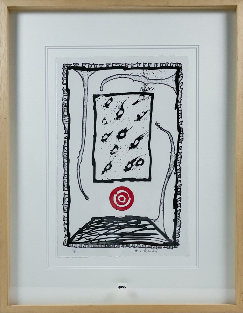 Zeer mooie ets van de Belgische kunstenaar Pierre Alechinsky. Het werk is gesigneerd en genummerd 26/90. Het werk is ingelijst.