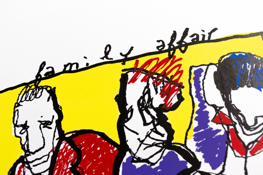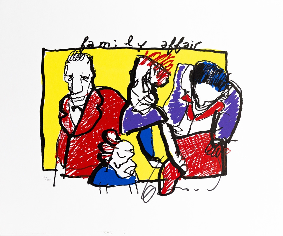Zeefdruk "Family affair" van Herman Brood, met de hand gesigneerd door Herman Brood.