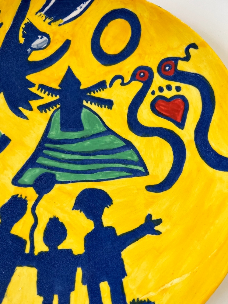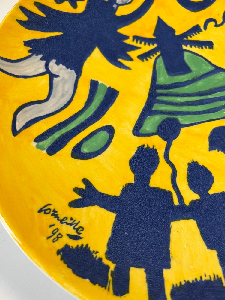 Mooie keramische schaal uit 1998 gemaakt voor het Nourypharma jubileum. Capsule creatie van 1998. E/A exemplaar geleverd met zijn originele doos en certificaat. Guillaume Corneille stelt hier de caduceus van de Farmaceutische groep voor (als knipoog naar de Cobra slang 50 jaar geleden) en het windmolen symbool van de Nederlandse folklore. Keramiek gesigneerd en gedateerd in het linkerpaneel nabij de rand. 33,5 cm omtrek - Met haakje aan de achterkant om het te bevestigen. Cobra tentoonstelling met de grootste Amerikaanse collectie van Corneille in Miami in voorjaar en zomer 2023. De Cobra overzichtstentoonstelling in het Cobra Museum in Amstelveen is net afgelopen op 15 januari. Uitbrengen van een Cobra / Corneille postzegel door Bpost in 2023 Corneille sieraden tentoongesteld in de Boghossian Stichting tot 14 mei 2023 (Ornamentum, collectie Diane Venet)