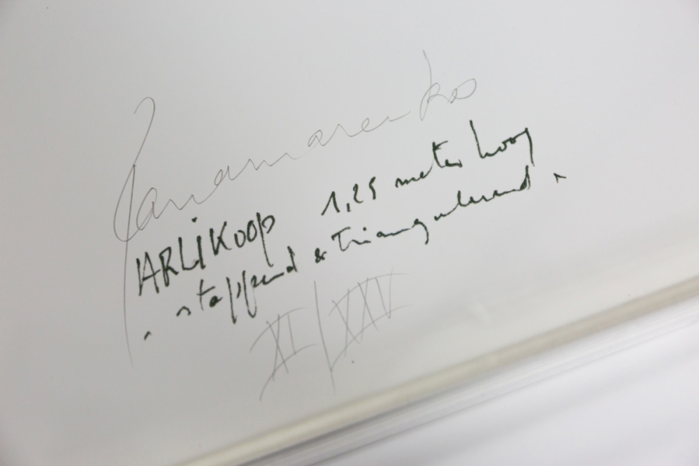 Deze collage werd met de hand gesigneerd en genummerd door Panamarenko. De uitgave is 75 exemplaren + 25