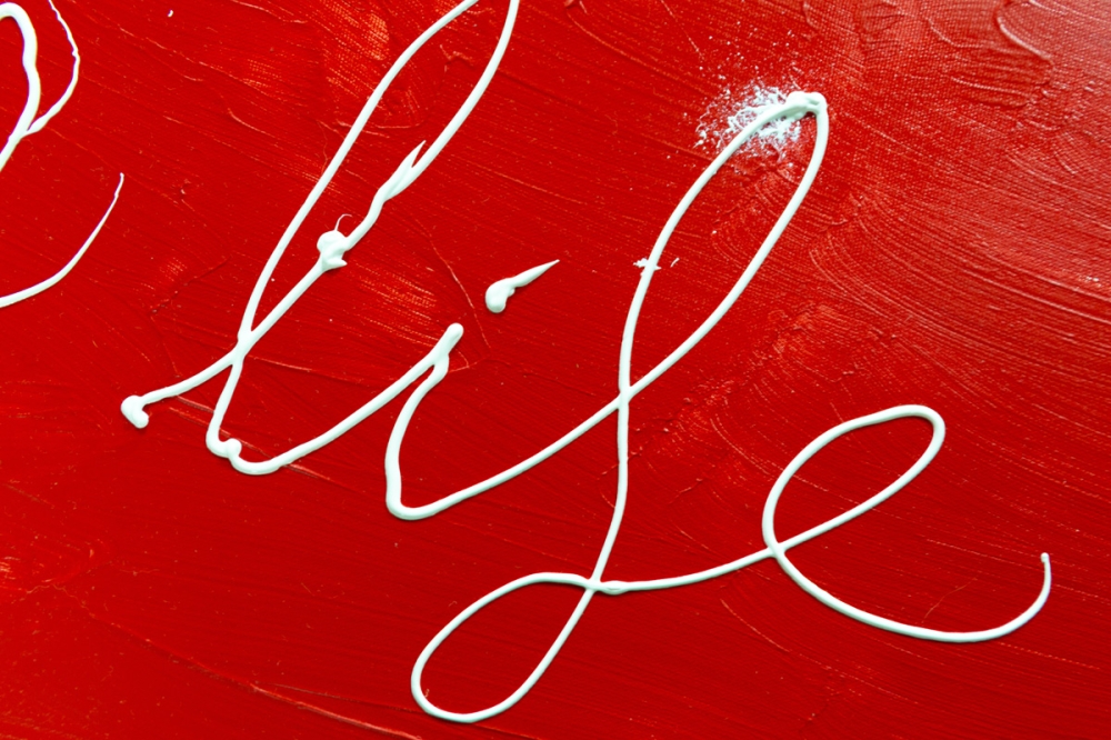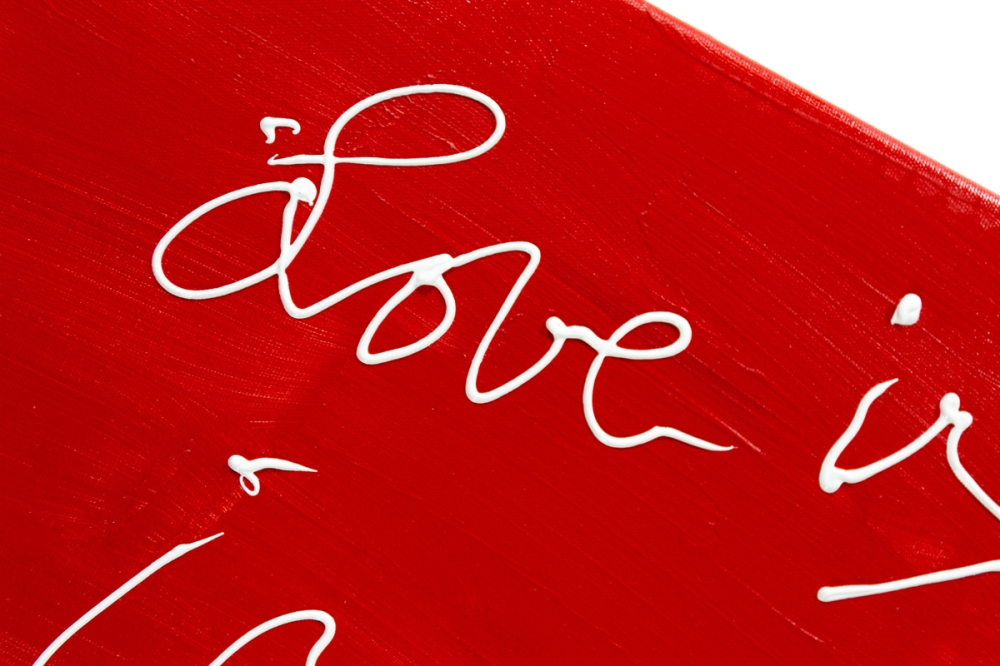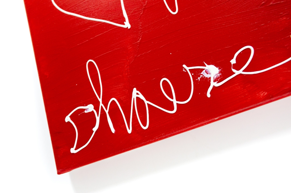 Schilderij op doek van Hannes D'Haese. Typisch voor Hannes zijn de letters in relief en het optimistische feelgood karakter.