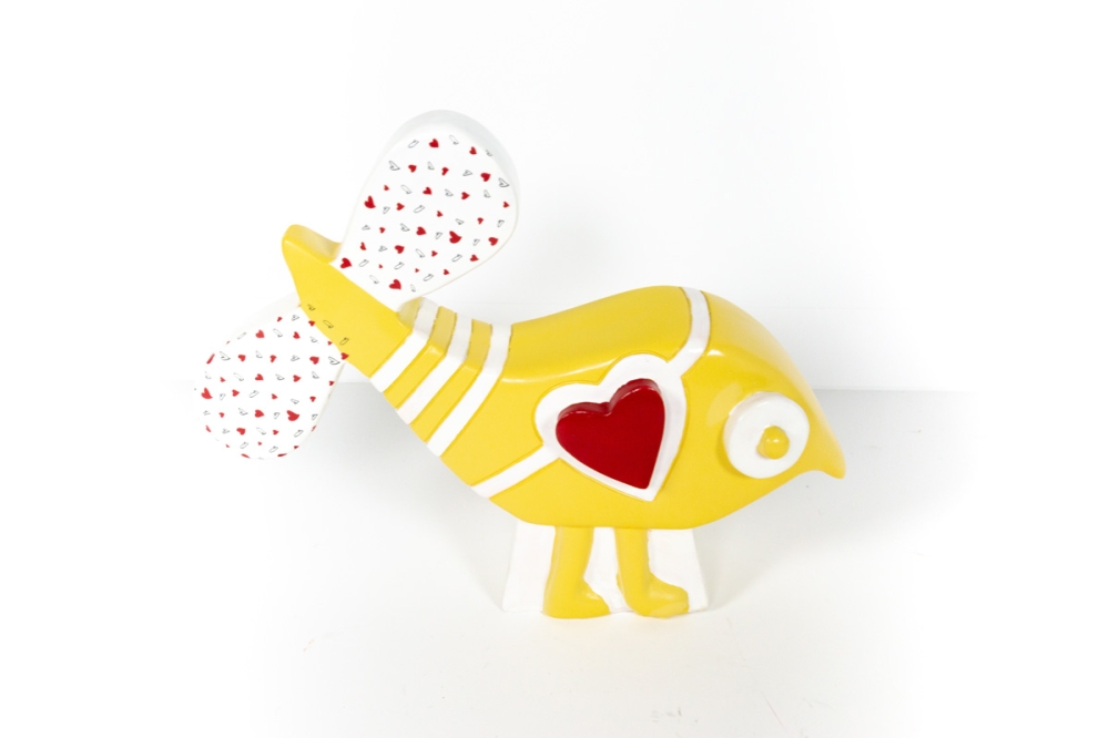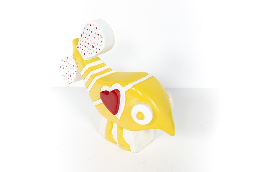 Een klein Love Bird sculptuurtje van Hannes D'haese. Deze sculptuurtjes komen uit een beperkte uitgave van 200 stuks.