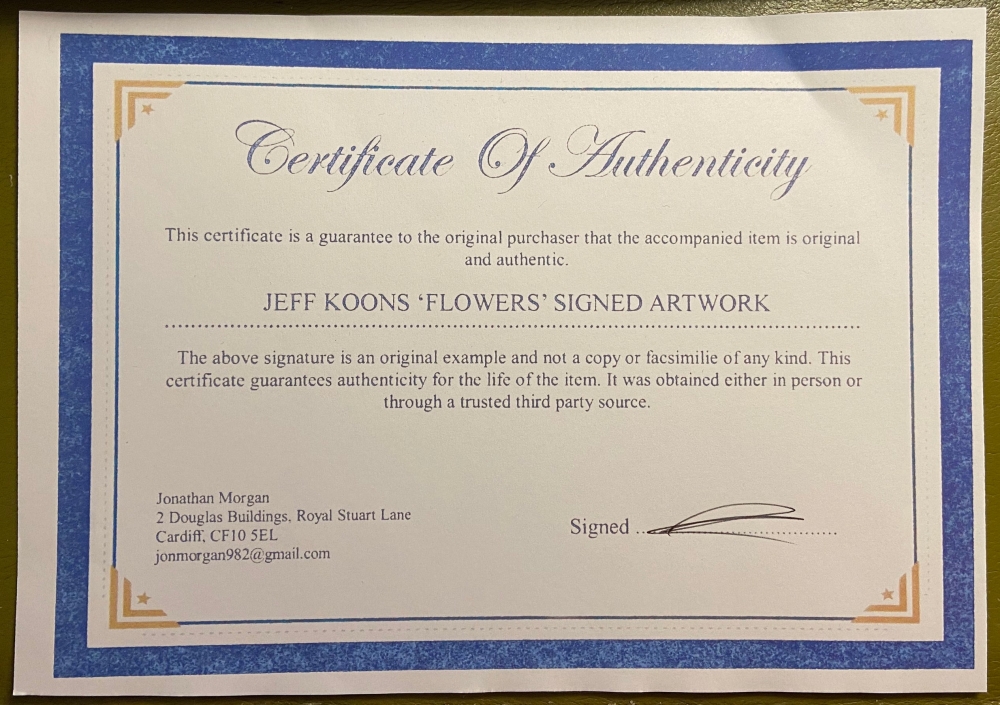 Artist: Jeff Koons Title: Flowers Size: 21 x 29.7cm Drawing on Paper ink drawing Signed by the artist COA Delivered from FRANCE with tracking Number Free shipping WORLDWIDE Secured and fast shipping