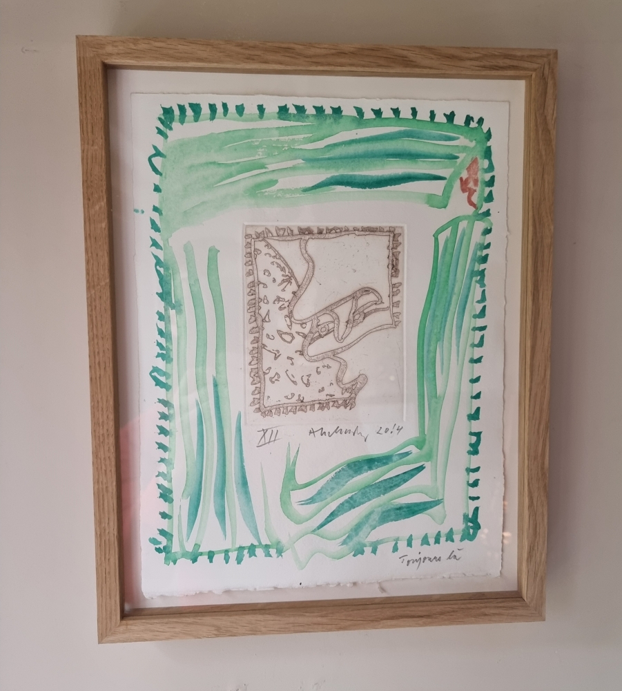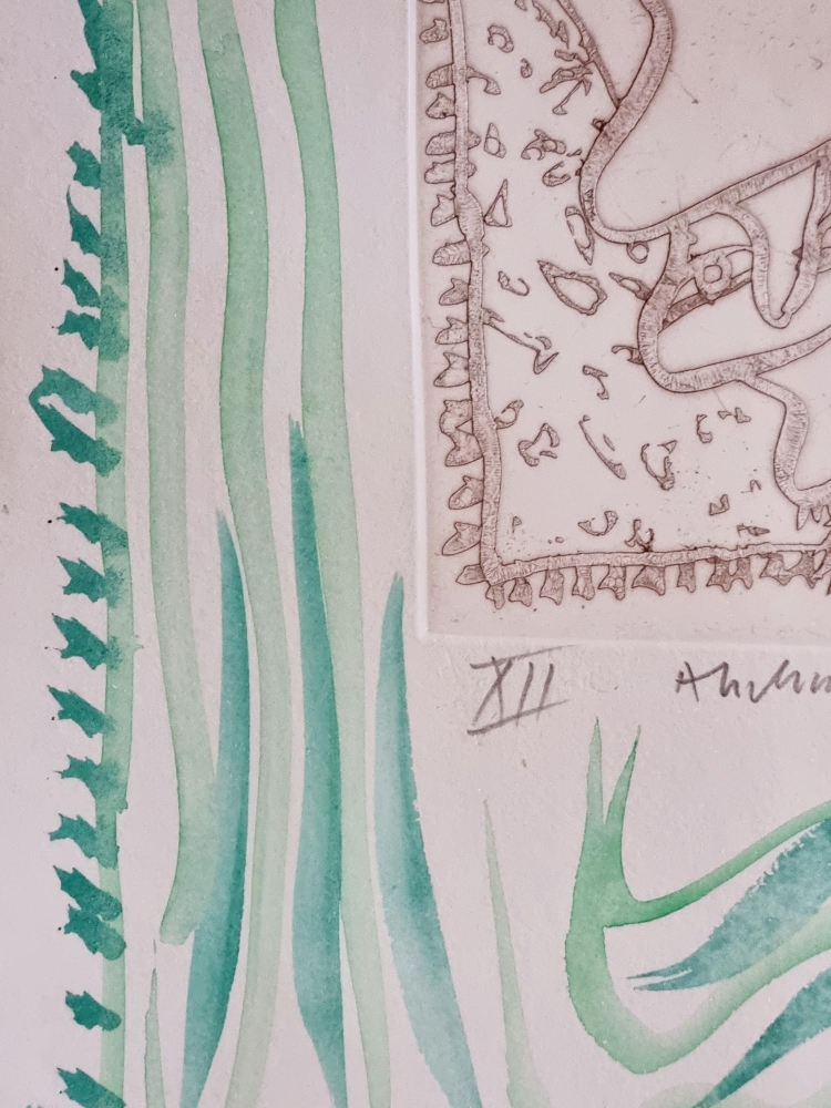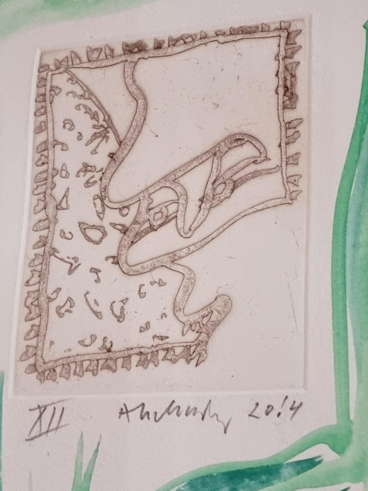 Origineel werk van Pierre Alechinsky. Mixed Media: Aquarelle + Ets op vélin d'Arches "Toujours Là VII" Gesigneerd, gedateerd en getiteld in potlood door de kunstenaar Het werk is professioneel ingelijst met een kader in eik. Provenance: Rechtstreeks van de kunstenaar Er is een certificaat beschikbaar