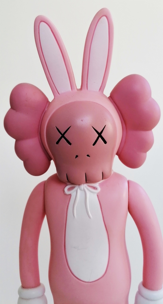 KAWS (1974) Accomplice Pink 2002 Rose vinyl sculptuur De afmetingen zijn 30 x 11 x 6 cm Dit sculptuur is uitgegeven door Medicom Toy Tokyo, Japan in 2002. Het sculptuur verkeert in goede originele staat!