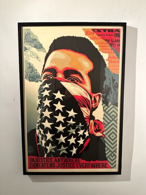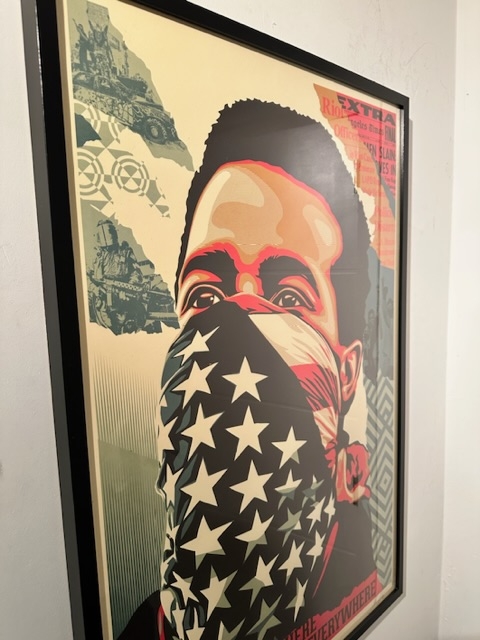 Een mooie offset litho van Shepard Fairey. Gesigneerd in potlood rechts onderaan. Open editie. De litho is in nieuwstaat en is gedrukt op crème speckletone dik papier. In perfecte staat en zeer groot formaat