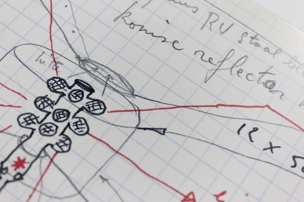 Dit is een uitzonderlijke proefdruk, met de hand gesigneerd door Panamarenko.