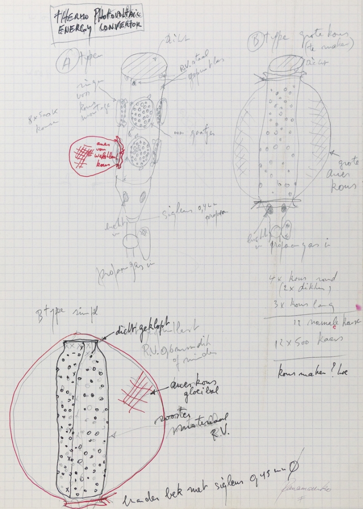 Een litho van Panamarenko uitgegeven in 2001 in de reeks Photovoltaic Energy Converter.