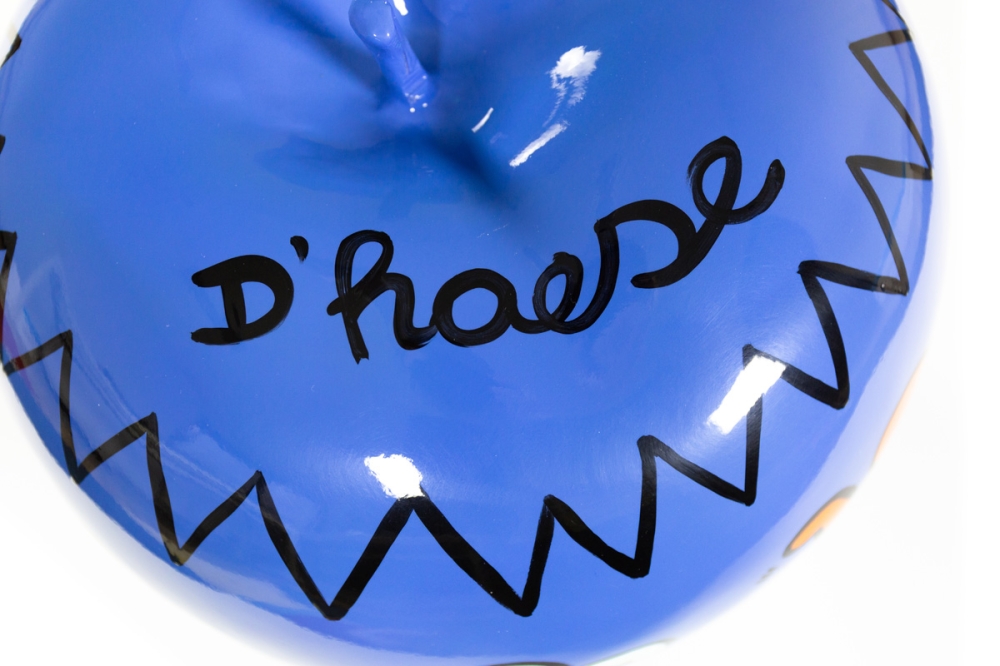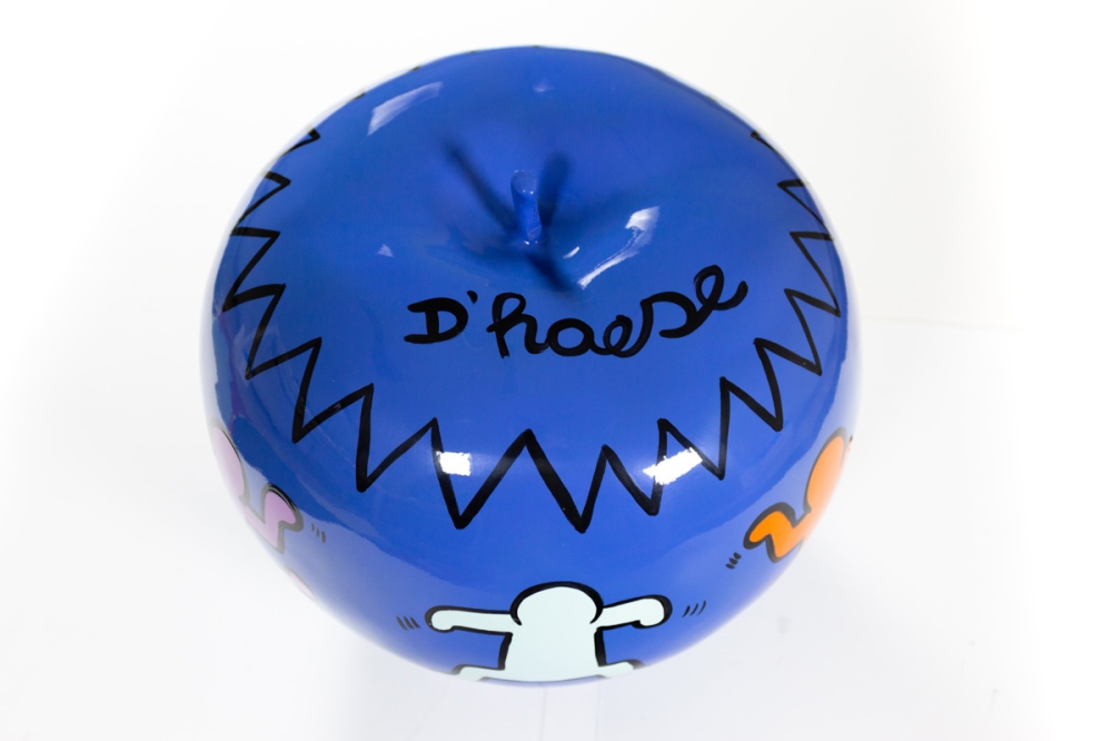 Een kunstig beschilderd appelsculptuur door Hannes D'Haese. De sculptuur is uniek met de hand beschilderd. Werk is in uitstekende staat. Met echtheidscertificaat uitgegeven door de Hannes D'Haese Shop