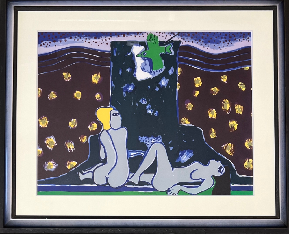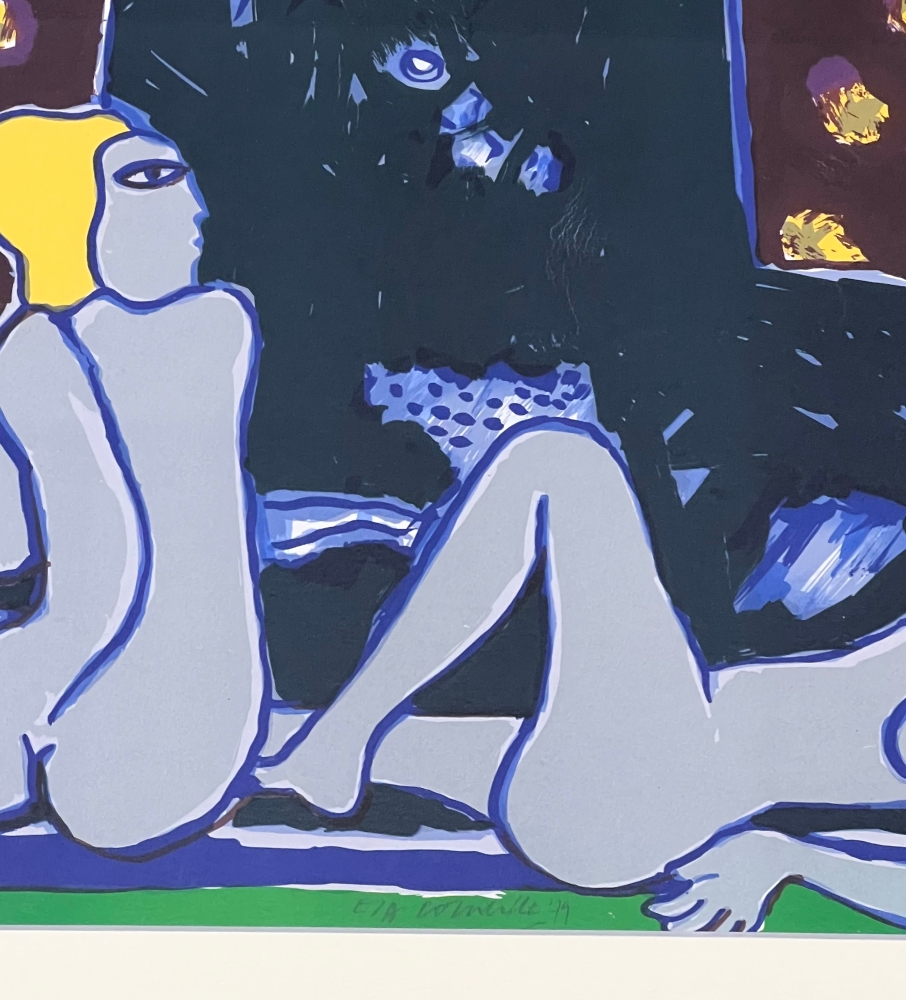 Cobra tentoonstelling met de grootste Amerikaanse collectie van Cornelius in Miami in voorjaar en zomer 2023. De Cobra overzichtstentoonstelling in het Cobra Museum in Amstelveen is net afgelopen op 15 januari. Uitbrengen van een Cobra / Cornelius postzegel door Bpost in 2023 Sieraden van Corneille te zien in de Boghossian Stichting tot 14 mei 2023 (Ornamentum, Collectie Diane Venet) Uitzonderlijk werk - Massief frame in gevernist geschilderd hout, gemaakt door Corneille tijdens zijn leven. Stempel Atelier Corneille op de achterzijde. Originele litho van de schilder Guillaume Corneille (1922-2010), geboren in Luik uit Nederlandse ouders, stichtend lid van de Cobra-beweging. Onderaan gesigneerd en gedateerd in grafiet door de schilder - Kunstenaarsexemplaar E/A Totale afmeting : 74 x 89 cm - Afmeting van het werk : 50 x 65 cm Zeer goede staat, de lijst die meer dan 20 jaar oud is vertoont sporen van slijtage en krassen - Veilige verzending met verzekering door UPS in een kartonnen doos.