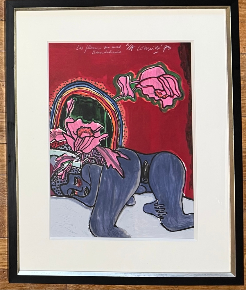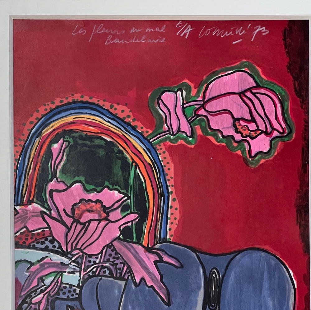 Cobra tentoonstelling met de grootste Amerikaanse collectie van Corneille in Miami in voorjaar en zomer 2023. De Cobra-retrospectieve in het Cobra Museum in Amstelveen is net afgelopen op 15 januari. Uitbrengen van een Cobra / Corneille postzegel door Bpost in 2023 Sieraden van Corneille te zien in de Boghossian Foundation tot 14 mei 2023 (Ornamentum, Collectie Diane Venet) Houten lijst met zilveren randen, gemaakt door Corneille tijdens zijn leven. Stempel Atelier Corneille op de achterkant. Schitterend werk, bovenaan gesigneerd, getiteld en gedateerd door de schilder. Exemplaar van de kunstenaar E/A Gerefereerd onder nummer 351 van de Donkersloot catalogue raisonné. Gelithografeerde zeefdruk (kleuren aangebracht met lithografische platen) van de schilder Guillaume Corneille (1922-2010), geboren in Luik uit Nederlandse ouders, stichtend lid van de Cobra-beweging. Totale afmeting : 58 x 47 cm - Afmeting van het werk : 41 x 30 cm Zeer goede staat, de lijst die meer dan 20 jaar oud is vertoont sporen van slijtage en krassen - Veilige verzending met verzekering door UPS in een kartonnen doos.