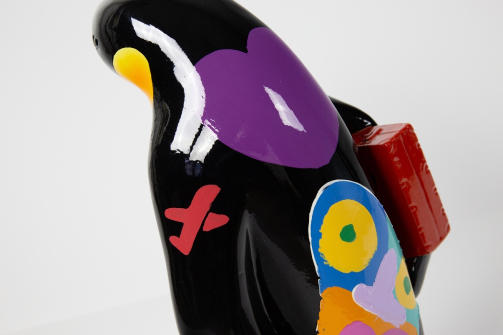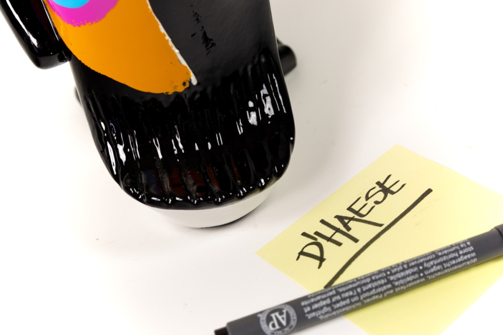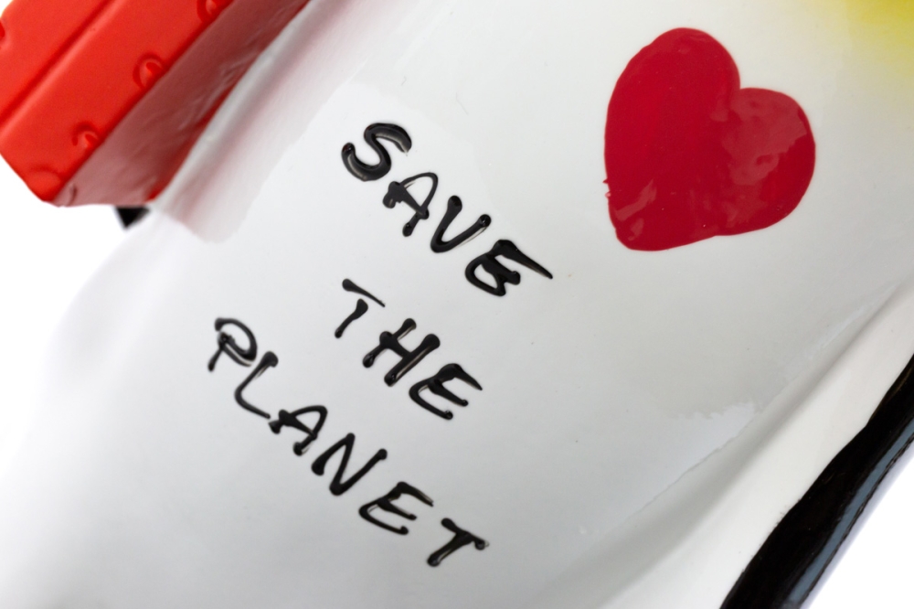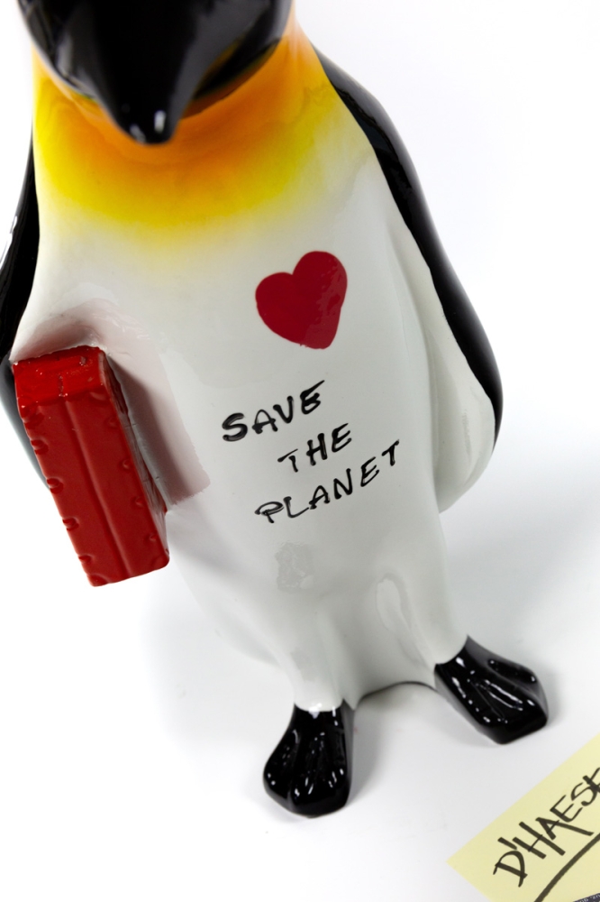Een nieuw sculptuurtje van Hannes D'Haese met als opschrift "save the planet".