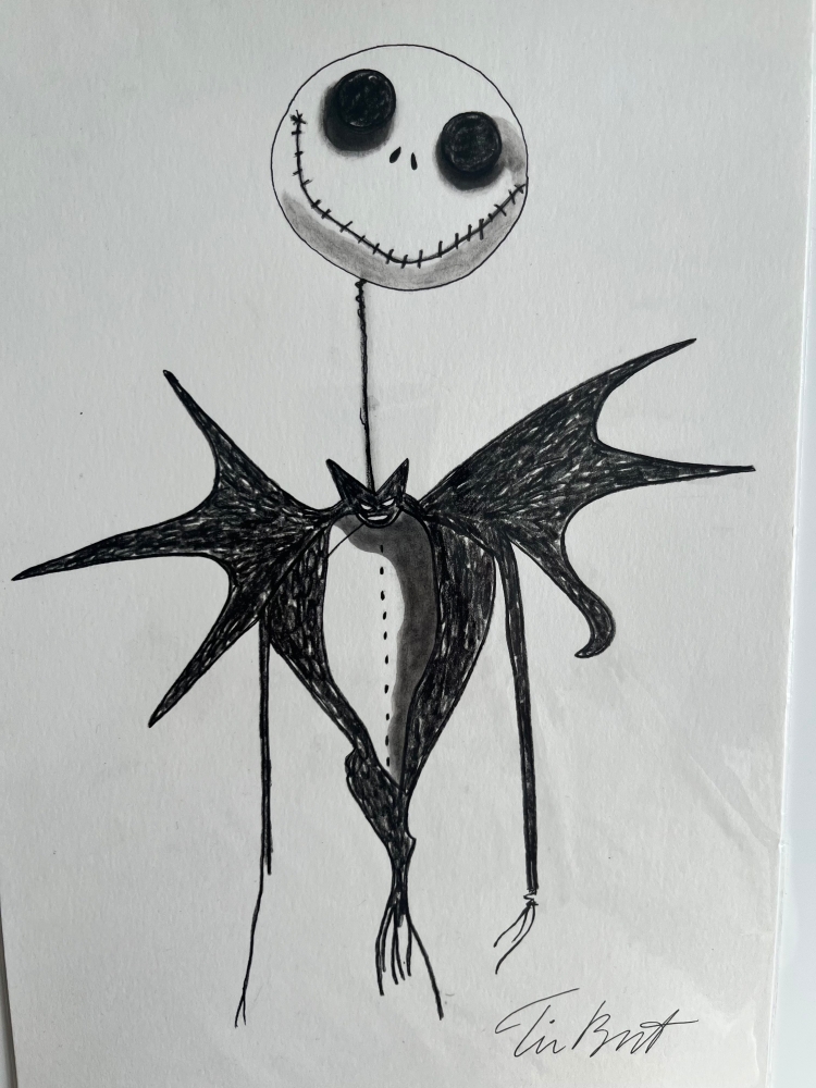 Tim Burton Dessin original Untitled sans titre Papier d'art ancien taille : 21 x 30 cm approximativement dessin sur stylo livraison avec un certificat d'authenticité livraison sans encadrement pour mieux protéger l'oeuvre signature en bas à droite valeur sur le marché estimer entre 1000 et 1500 euros