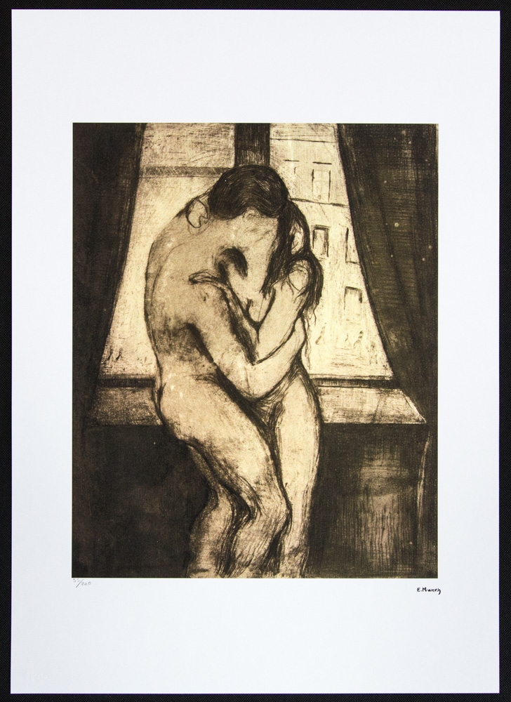 Edvard Munch (naar) "Le Baiser" gelimiteerde oplage van 200 exemplaren, lithografische afdruk, plaat gesigneerd rechtsonder, genummerd in potlood linksonder 95/200, kunstpapier, met La TREC Spa reliëf, formaat vel: 50 x 70cm, zonder extra documentatie, verkocht zonder lijst; we bieden binnenvaart aan, als de koper meerdere items wint, zullen we de verzending combineren