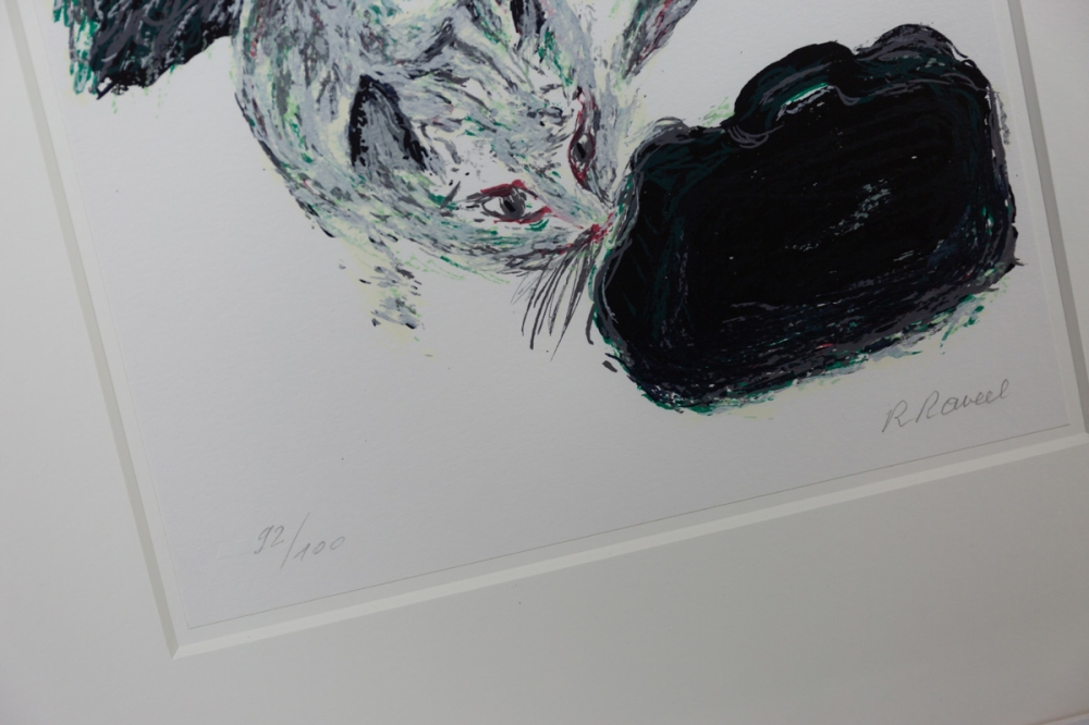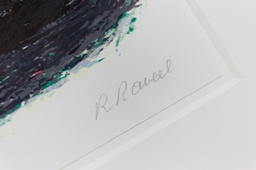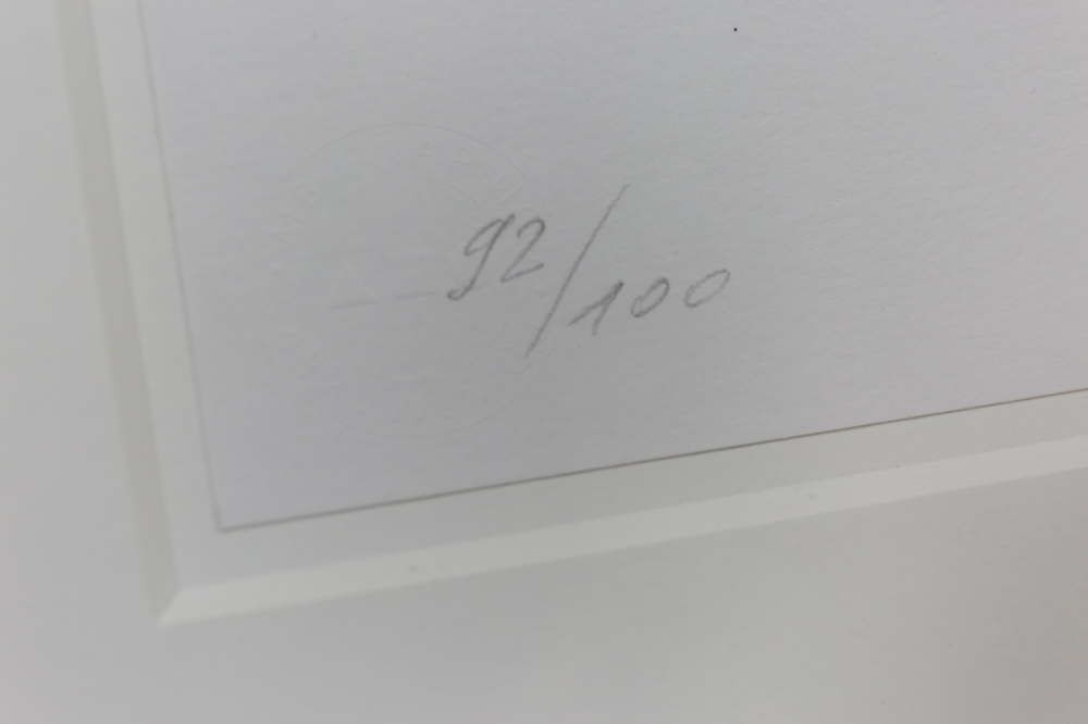 Het werk is mooi ingekaderd in een wit houten frame met uv-werend glas. Werk en kader verkeren in uitstekende staat. Met bijhorend certificaat uitgegeven door de galerij van Raveel (ART-Gallery.be)