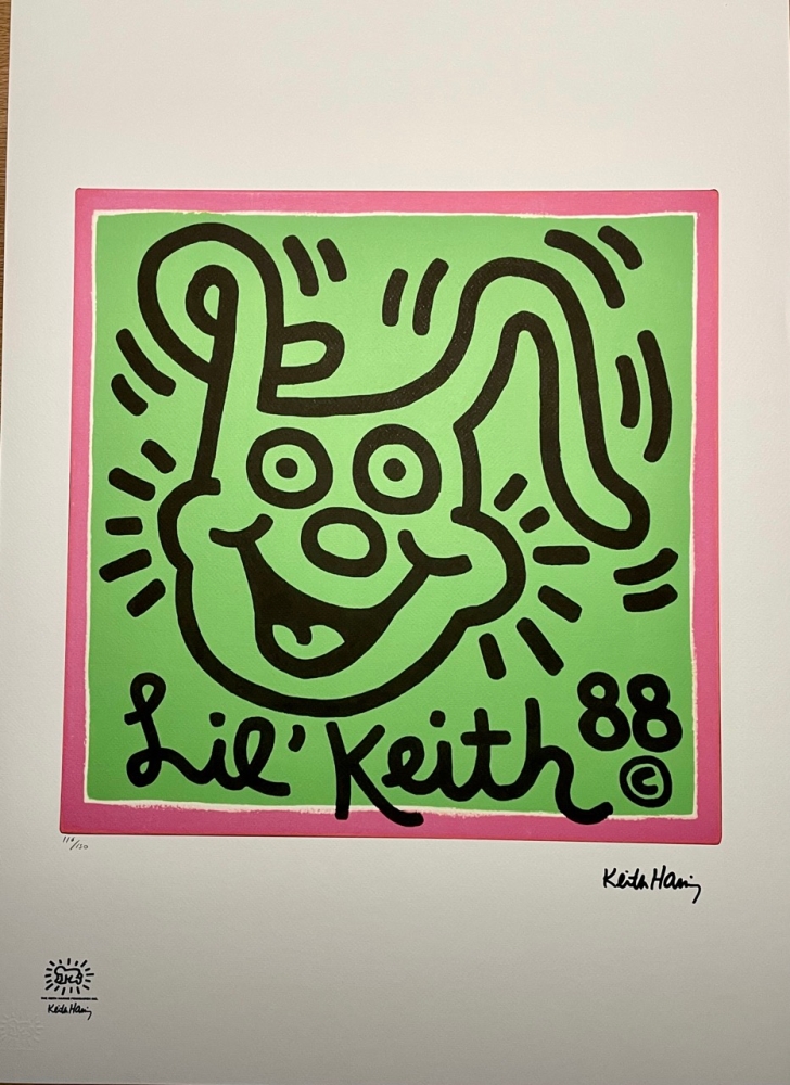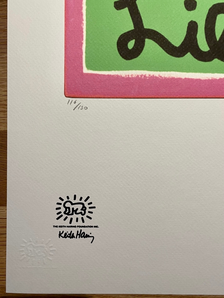 Lithografie "Zonder titel" Plaat met de hand gesigneerd en genummerd Gelimiteerde oplage van 150 stuks Elk stuk is individueel genummerd #116/150 Totale afmetingen: 50 cm x 70 cm Droogstempel Keith Haring Foundation