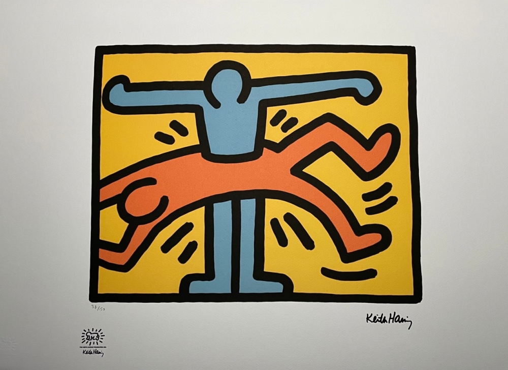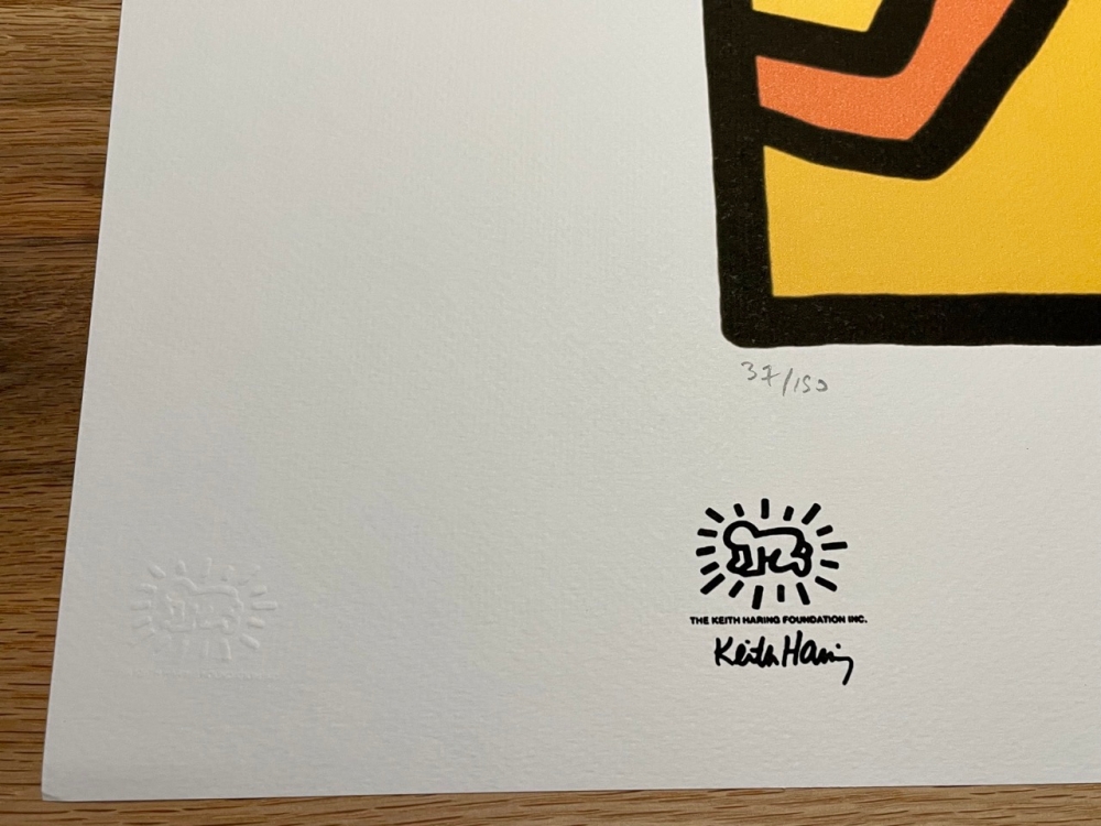 Lithografie "Zonder titel" Plaat met de hand gesigneerd en genummerd Gelimiteerde oplage van 150 stuks Elk stuk is individueel genummerd #37/150 Totale afmetingen: 50 cm x 70 cm Droogstempel Keith Haring Foundation