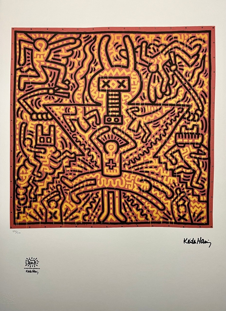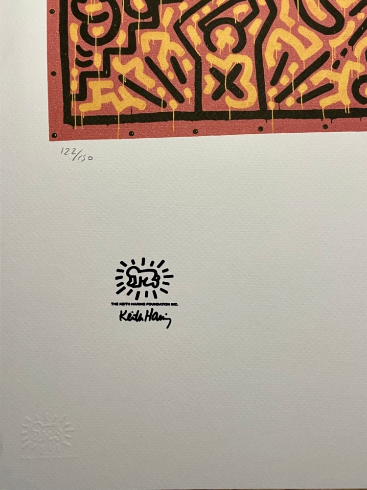 Lithografie "Zonder titel" Plaat met de hand gesigneerd en genummerd Gelimiteerde oplage van 150 stuks Elk stuk is individueel genummerd #122/150 Totale afmetingen: 50 cm x 70 cm Droogstempel Keith Haring Foundation