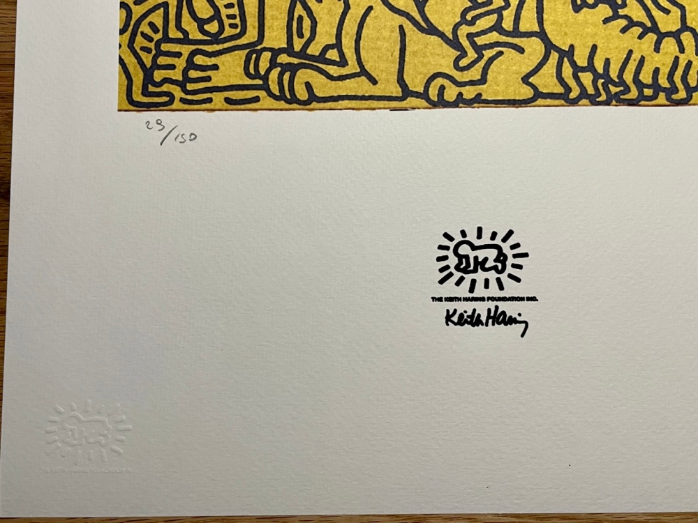 Lithografie "Zonder titel" Plaat met de hand gesigneerd en genummerd Gelimiteerde oplage van 150 stuks Elk stuk is individueel genummerd #29/150 Totale afmetingen: 50 cm x 70 cm Droogstempel Keith Haring Foundation