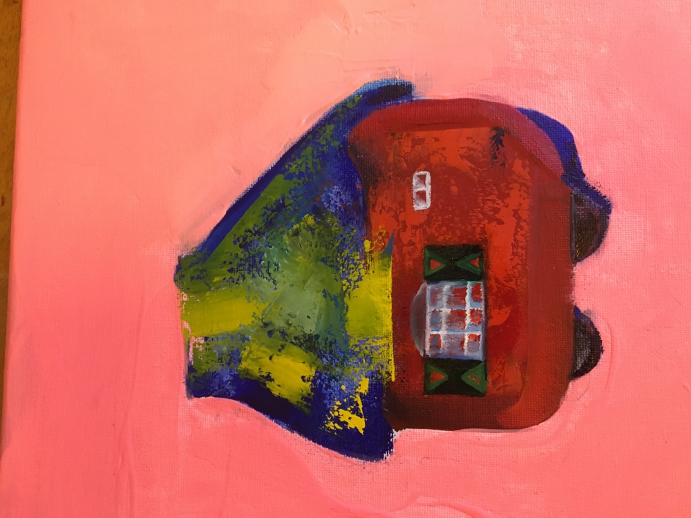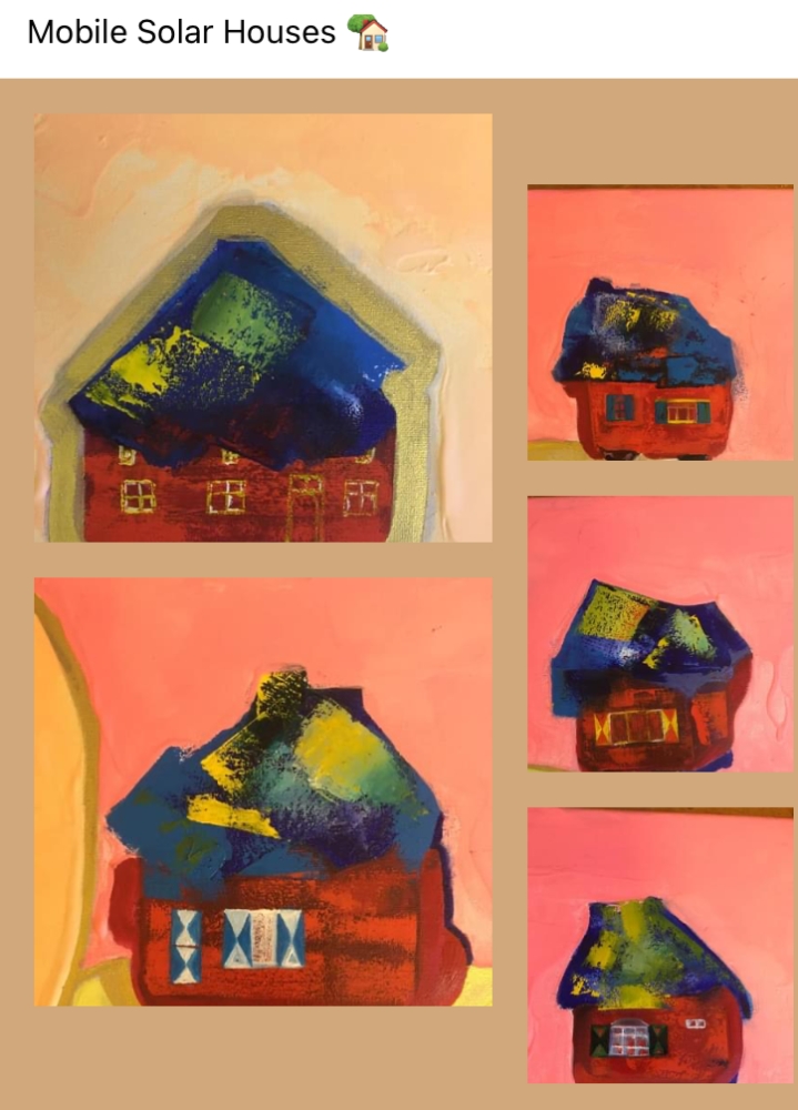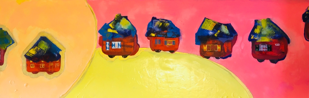 "Mobiele zonnehuizen" is een werk van voorspelling van technologieën Origineel kunstwerk door Marie Mountson. olie en acryl op canvas. gesigneerd, gedateerd en getiteld door de kunstenaar. het werk is ingelijst. geleverd met certificaat en factuur