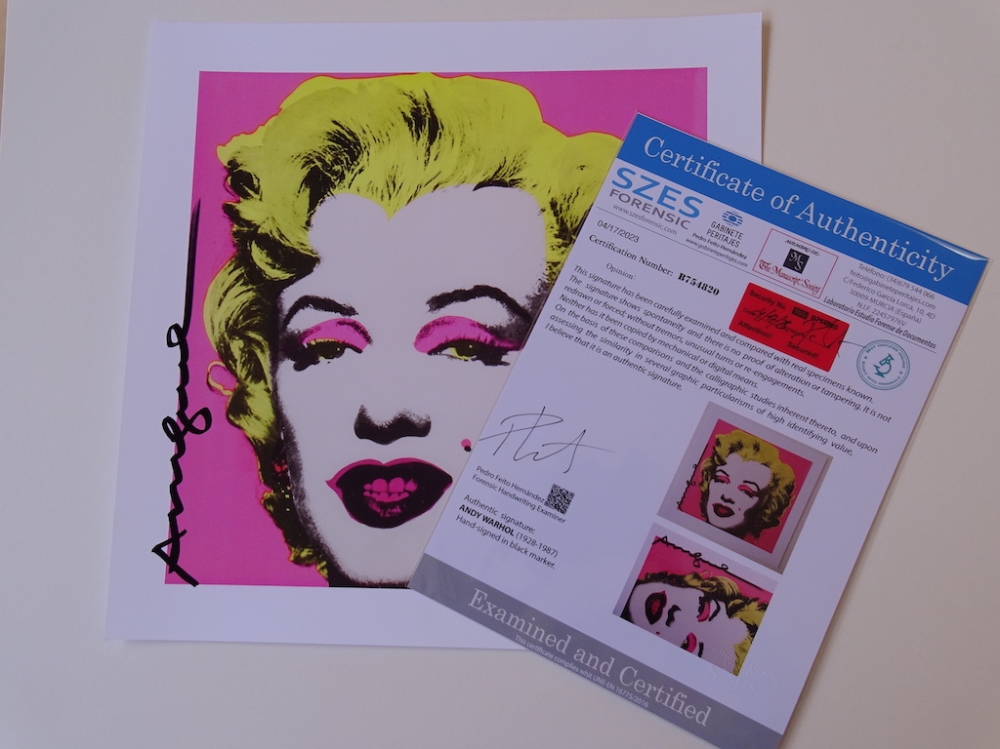 Andy Warhol (1928-1987) - Marilyn COA included, Certificate of Authenticity Andy Warhol, hand signed, offset print The front of the banknote features Andy Warhol's signature in black marker in the center. Warhol has been the subject of numerous retrospective exhibitions, books, and feature and documentary films. The Andy Warhol Museum in his native city of Pittsburgh, which holds an extensive permanent collection of art and archives, is the largest museum in the United States dedicated to a single artist. Warhol has been described as the "bellwether of the art market". Many of his creations are very collectible and highly valuable. His works include some of the most expensive paintings ever sold.[7] In 2013, a 1963 serigraph titled Silver Car Crash (Double Disaster) sold for $105 million. In 2022, Shot Sage Blue Marilyn (1964) sold for $195 million, which is the most expensive work of art sold at auction by an American artist. Contents