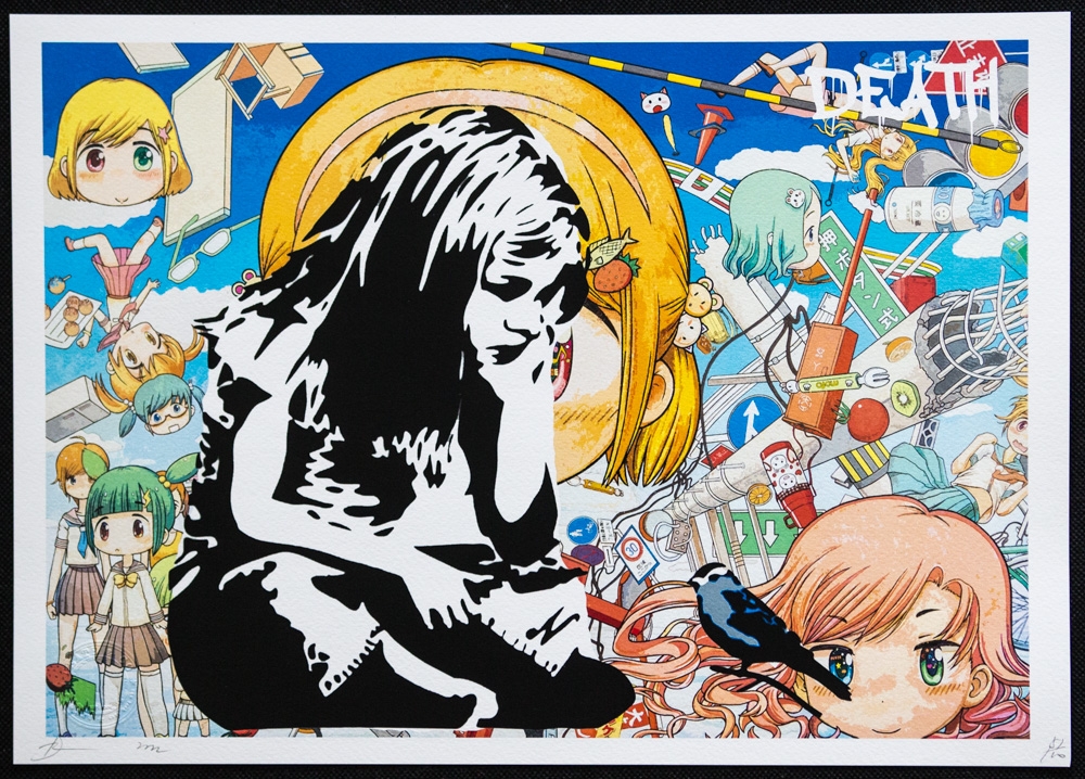 DEATH NYC "Banksy - Girl with Blue Bird" DEATH NYC is a New York City-based street artist. Her pseudonym is an acronym for "Don't Easily Abandon the Hope". Print is blind stamped, comes with Certificate of Authenticity signed DEATH NYC and Gold Seal Sticker, Size: 45 x 32 cm, Hand Signed, Excellent Condition, Sold Unframed, we offer in-house shipping, if the buyer win multiple items, we will combine shipping
