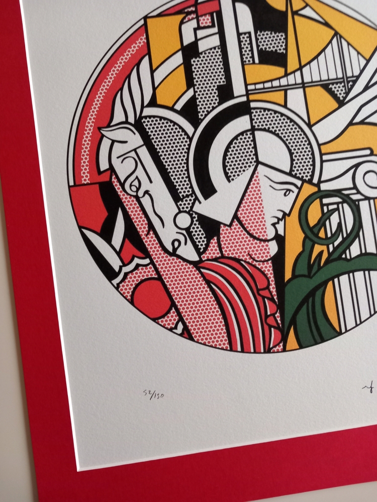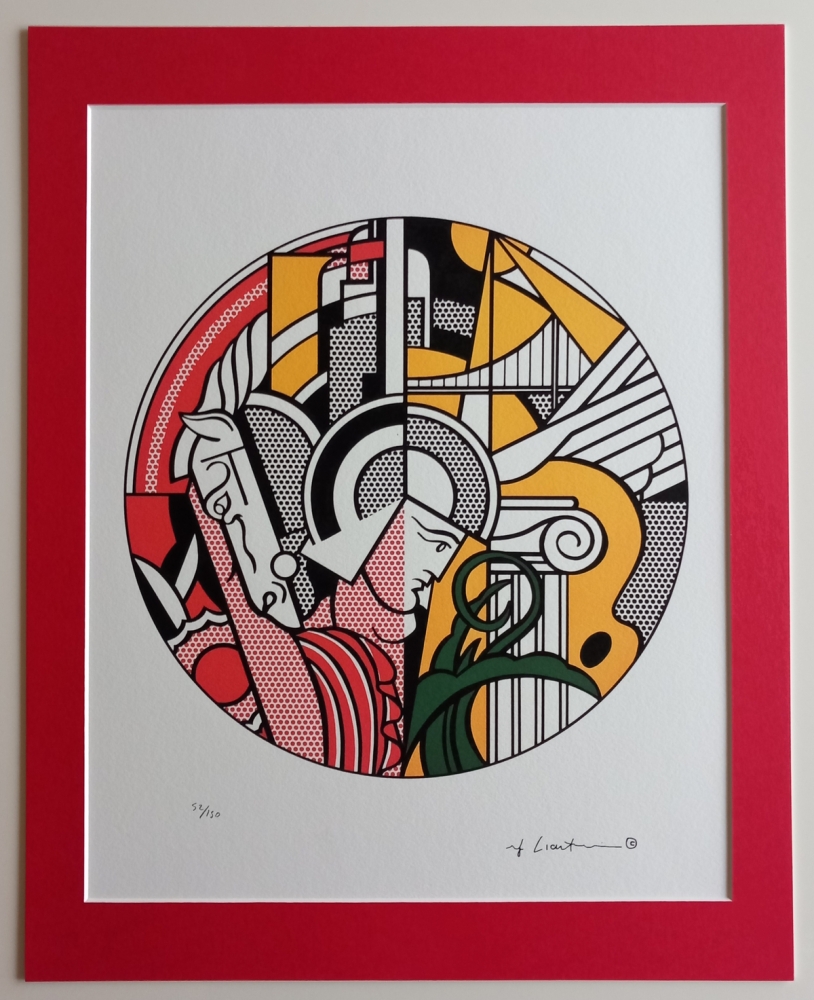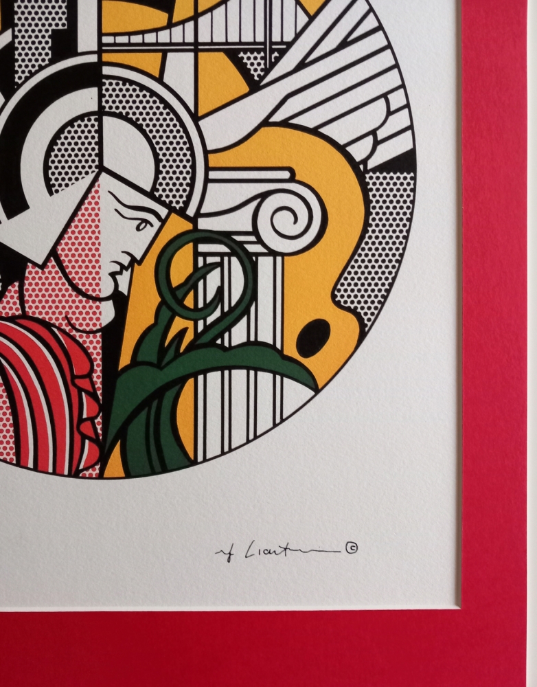 Lithografie naar het origineel uit 1969. Gesigneerd in de plaat en genummerd 52/150. Licentie met droogstempel van Styria Studio. Uitgave Castelli Graphics NY met inktstempel. Met passe-partout 40*60 cm. Opgenomen in The Prints of Roy Lichtenstein: A Catalogue Raisonné 1948-1993. Deze afbeelding werd gemaakt voor de eerste solotentoonstelling van Lichtenstein in het Guggenheim Museum in New York. Het werk werd later gereproduceerd als reclameposter.