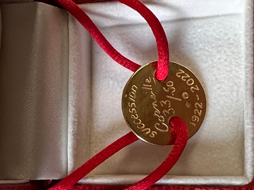 Laten we Valentijnsdag voorbereiden! Hart armband - Successie Guillaume Corneille - Genummerde editie van 50 - Hart ontworpen door Corneille in zilver vermeil (Goud op zilver) 3,5 gram. 2 cm in diameter, rode zijden schakel, verstelbaar. Gemarkeerd door de juwelier Philip Cardon. Voor alle soorten polsen. Nummer 33 of nummer op aanvraag indien beschikbaar.