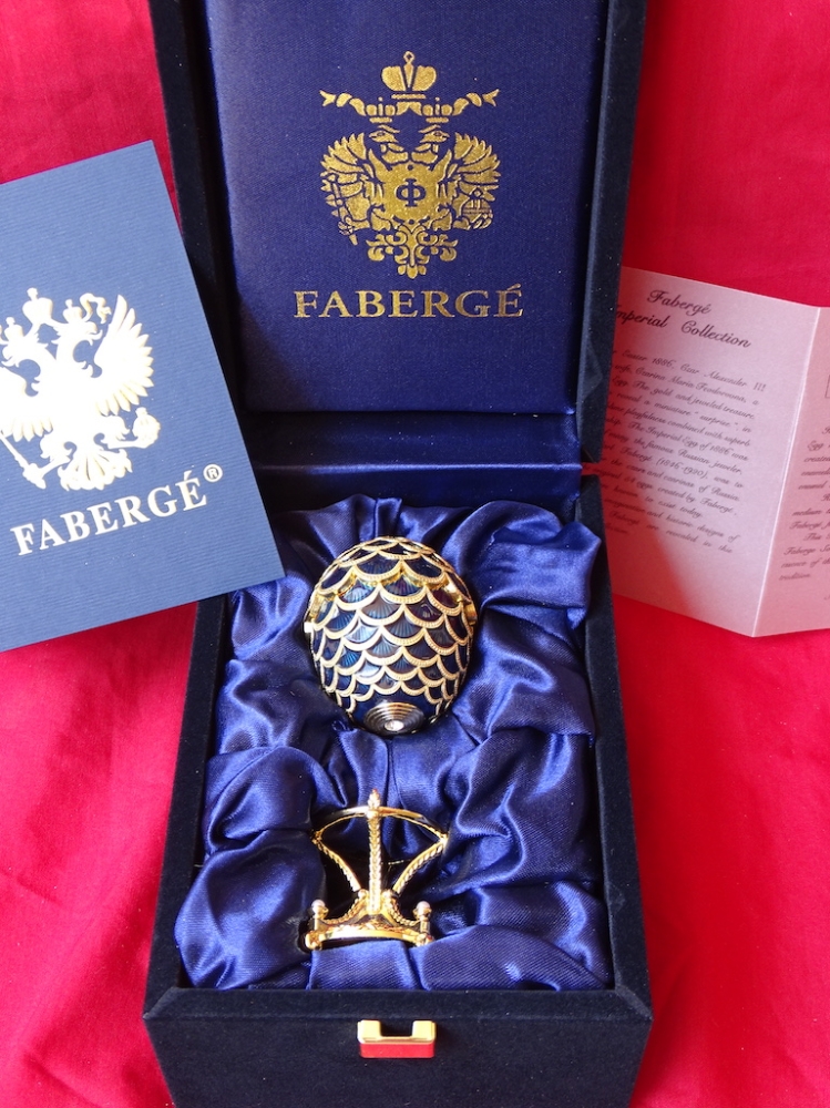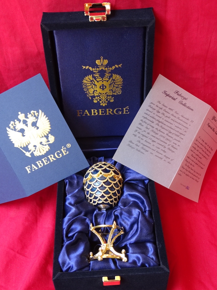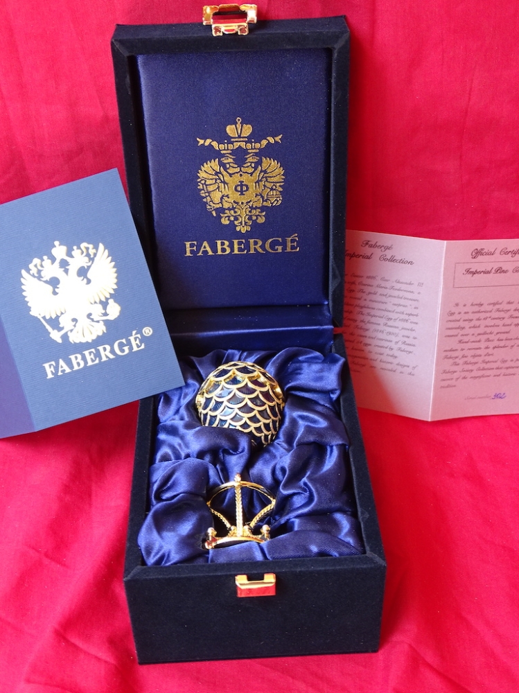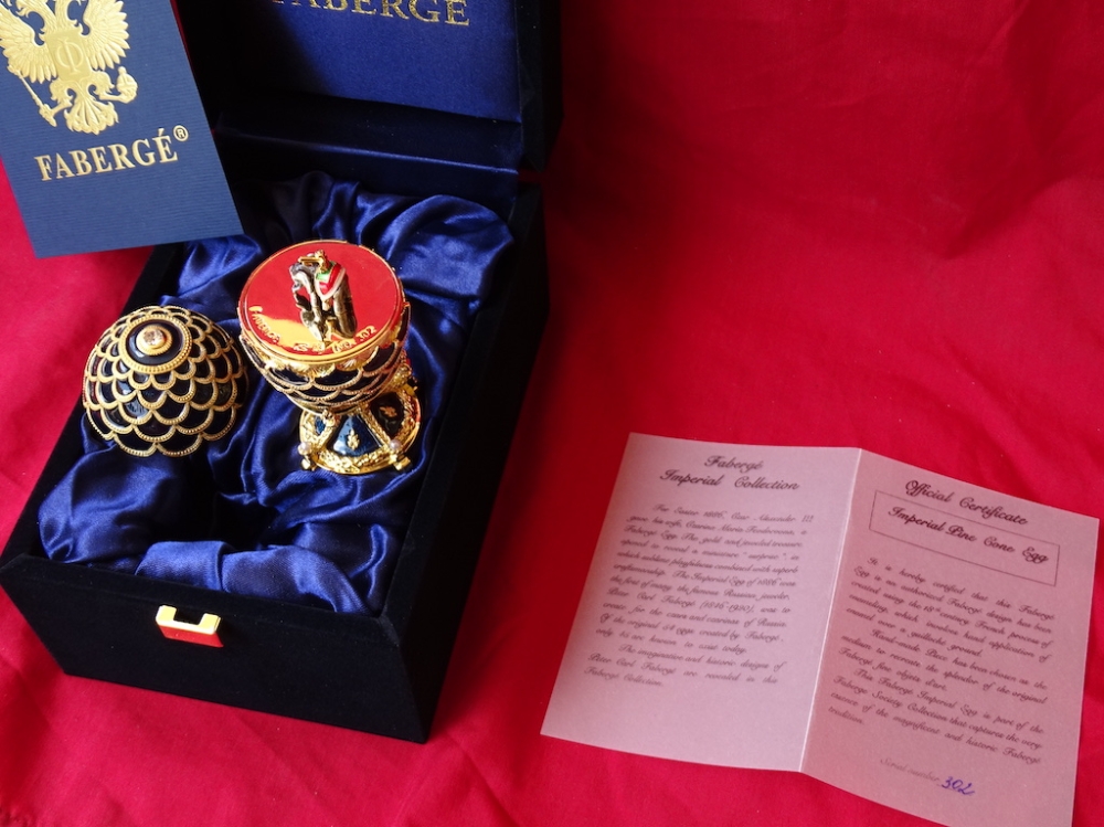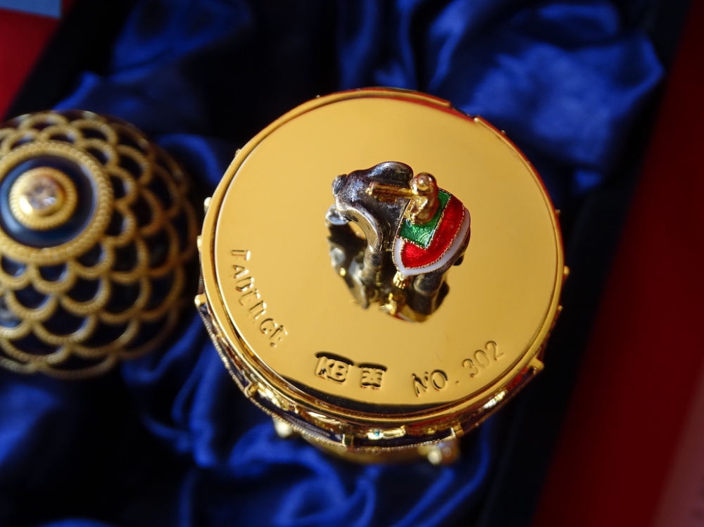 House of Fabergé - Imperial Egg - Hanger binnenin, volledig gestempeld, Certificaat van echtheid inbegrepen - Emaille Imperial Fabergé Ei met COA - Certificaat van Echtheid - 24 karaats gouden afwerking - Emaille Dit is een limited edition, zeer zeldzaam om te vinden emaille met een 24 karaats vergulde afwerking en meer dan 200 Oostenrijkse strass steentjes met een zeer mooie glans. Afmetingen ei en bodem ca. 9 cm, ei ca. 6 cm De familie Fabergé is afkomstig uit Frankrijk, maar werd gedwongen het land te verlaten vanwege religieuze vervolging. In de 18e eeuw verhuisde het gezin naar Rusland. Peter Carl Fabergé werd op 30 mei 1846 geboren als zoon van een goudsmid. Na in de leer te zijn geweest bij verschillende meester-zilversmeden in Duitsland, Frankrijk en Engeland, keerde Peter Carl Fabergé terug naar St. Petersburg als een zeer ervaren vakman. In 1885 schonk Peter Carl Fabergé het eerste keizerlijke ei aan tsaar Alexander III en werd al snel de beroemdste juwelier ter wereld. Investeren in Fabergé is net zo'n goed idee als investeren in goudstaven of zelfs investeren in de kunst van grote kunstenaars zoals Warhol, Chillida, Roy Lichtenstein Basquiat of Banksy.