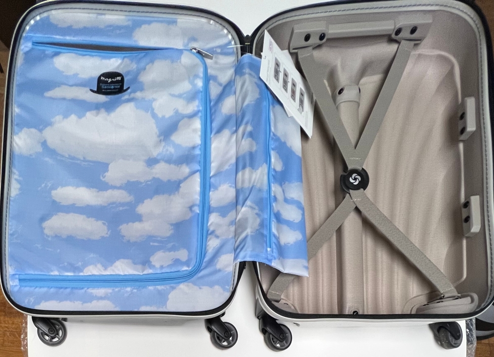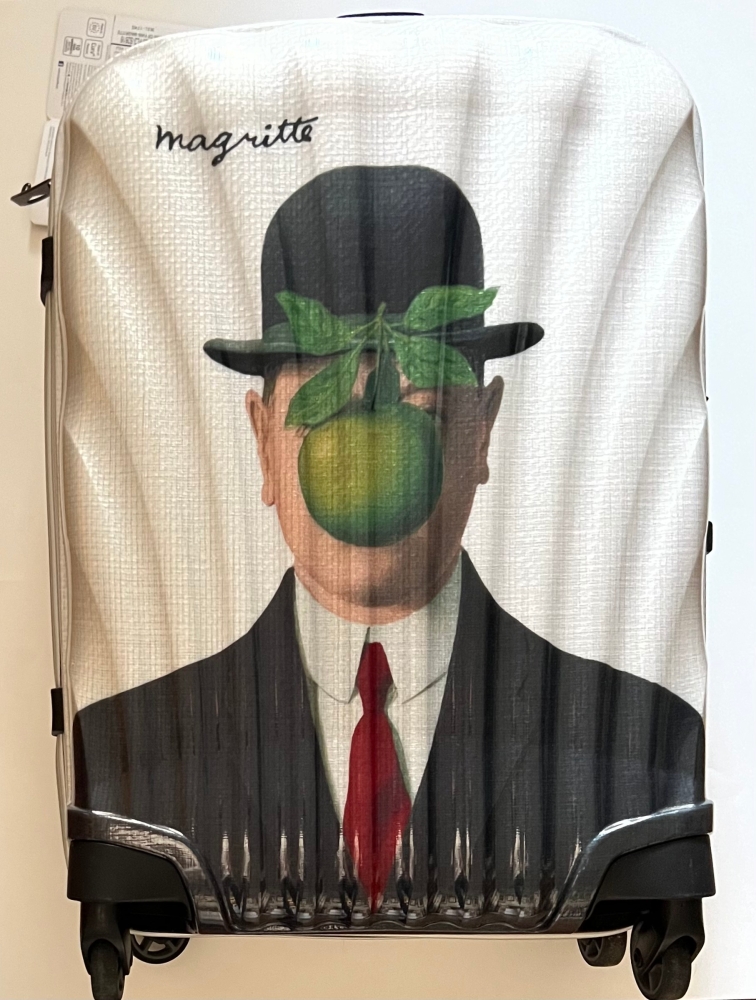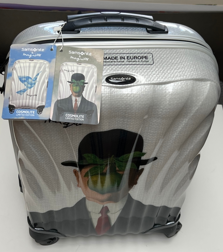 Capsule collectie. Nu moeilijk te vinden. Winkelprijs: 359 Geïllustreerd op de voorkant met het kunstwerk : De Zoon des Mensen. Verzamelobject 36 Liter: 59 x 38 x 23 cm. Gloednieuw met tags. Geautoriseerde cabine maat.