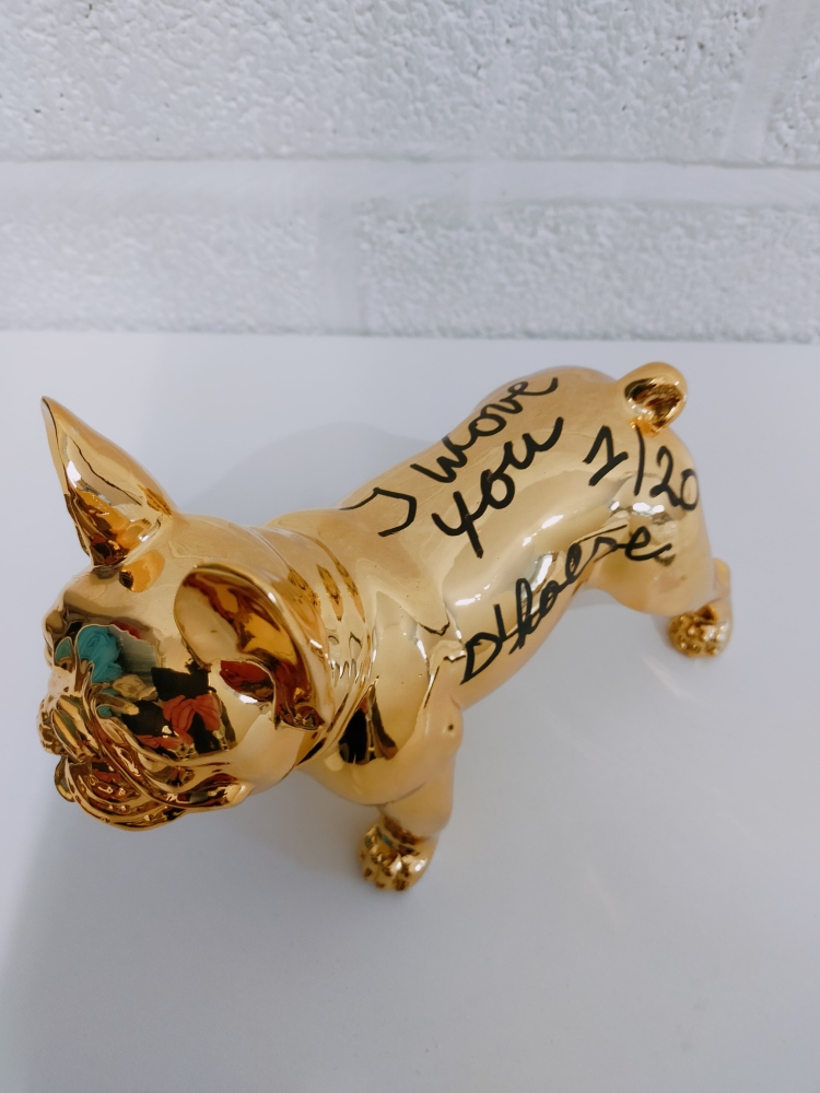 Hannes D'Haese - French bulldog Handgesigneerd Met echtheidscertificaat Perfecte staat Chroom Rechtstreeks van de kunstenaar Beperkte oplage, dit is nummer 1/20 Hannes D'Haese is een Belgische kunstenaar bekend om zijn sculpturen.