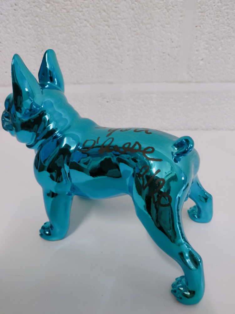 Hannes D'Haese - French bulldog Handgesigneerd Met echtheidscertificaat Perfecte staat Chroom Rechtstreeks van de kunstenaar Beperkte oplage, dit is nummer 2/20 Hannes D'Haese is een Belgische kunstenaar bekend om zijn sculpturen.
