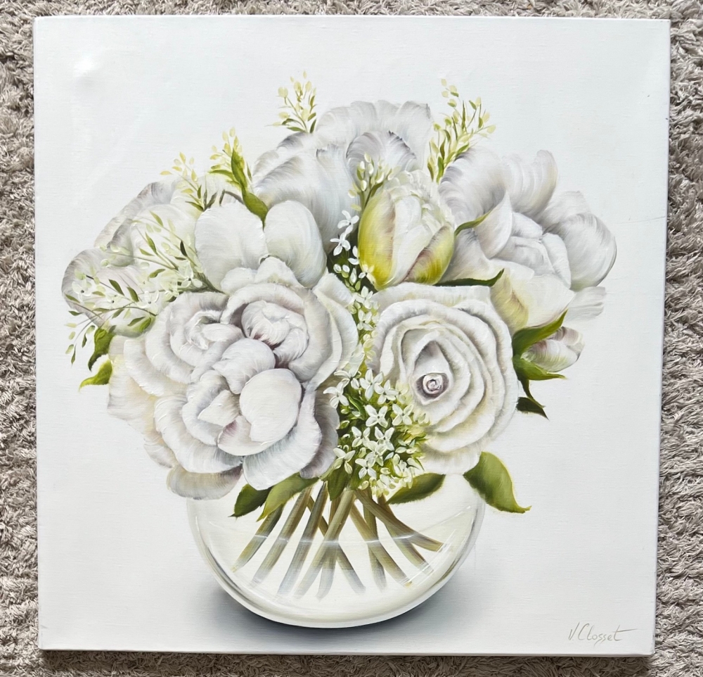 Prachtig werk van de kunstenaar geboren in 1969 in Antwerpen. 50 x 50 cm. Finesse en elegantie van stijl - Schitterend in een wit interieur (een kantoor, een slaapkamer, een loft). Een klein schokje in de linkerbovenhoek. Prachtig werk van de kunstenaar geboren in 1969 in Antwerpen. 50 x 50 cm. Finesse en elegantie van stijl - Schitterend in een wit interieur (een kantoor, een slaapkamer, een loft). Een klein schokje in de linkerbovenhoek.