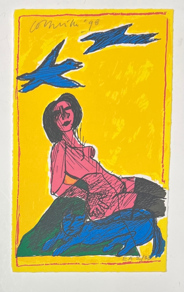 Schitterende litho, 21 x 13 cm. Kunstenaarsexemplaar EA 2/25 met Atelier Corneille stempel op de achterkant. Gesigneerd en gedateerd in grafiet bovenaan door Corneille. Cobra 75 jaar tentoonstelling vanaf 1 juni in het Cobra Museum in Amstelveen. Opening van het Cobra depot in Antwerpen in juni 2023. Uitgave van een Cobra / Corneille postzegel door Bpost in 2023.