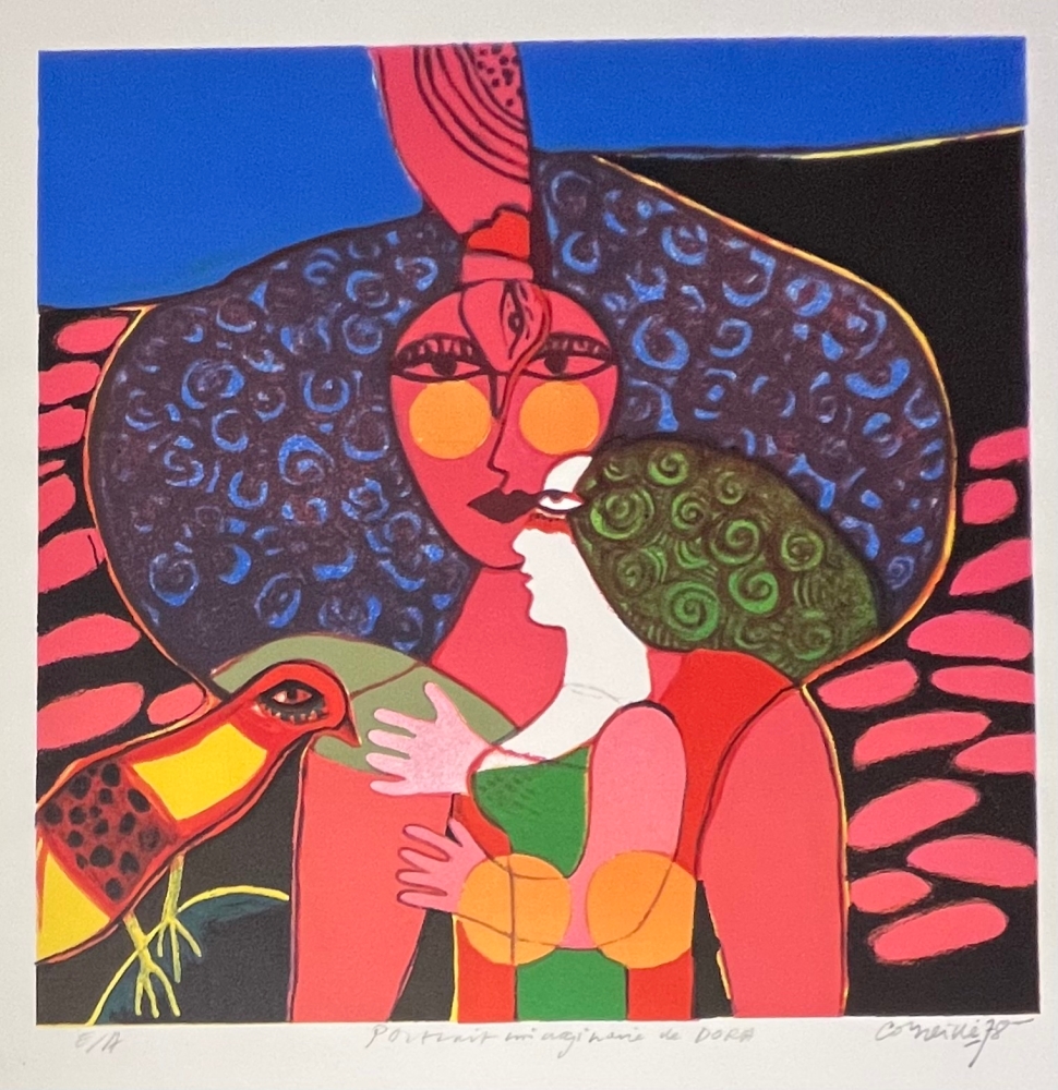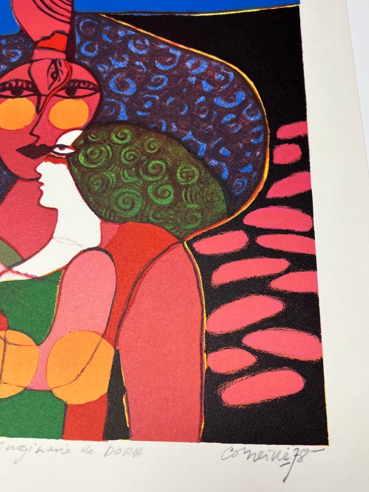 Antique werk dat moeilijk te vinden en gewild is geworden. Originele litho van de schilder Guillaume Corneille (1922-2010), geboren in Luik uit Nederlandse ouders en stichtend lid van de Cobra-groep met Karel Appel, Asger Jorn, Constant, Dotremont en later Alechinsky en Jacques Doucet Gesigneerd en gedateerd in potlood door de kunstenaar Artist's proof met Atelier Corneille stempel op de achterkant. Totale afmetingen: 70 x 49 cm - Zeer goede staat - Veilige verzending met UPS Tentoonstelling van 75 jaar Cobra sinds 1 juni in het Cobra Museum in Amstelveen. Opening van het Cobra-depot in Antwerpen. Uitgave van een Cobra/Corneille postzegel bij Bpost in 2023 Corneille, geïdentificeerd als een belangrijke figuur in de vernieuwing van de abstractie in Noord-Europa, evolueerde vanaf 1967 geleidelijk naar een rijke en kleurrijke nieuwe figuratie die coördineerde met de popart-smaak van de jaren zestig en zeventig, en exposeerde naast Andy Warhol, Arman, César, enz.