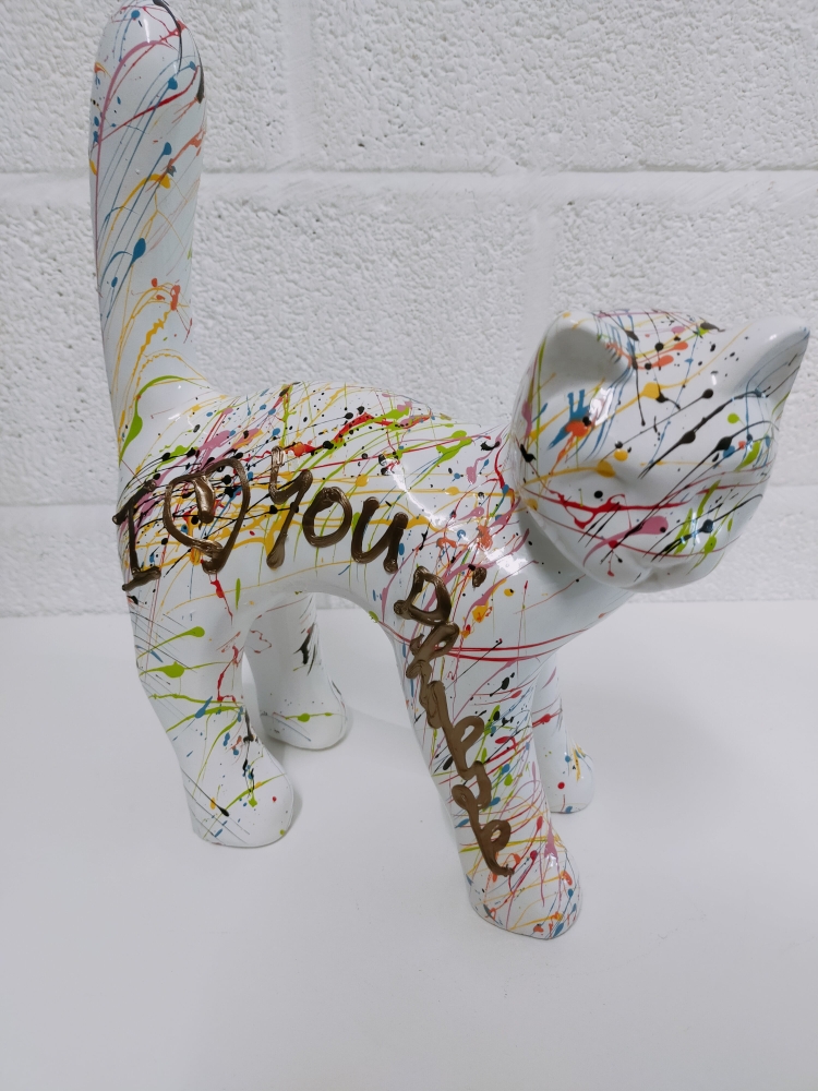 Hannes D'Haese - Kat i love you Handgesigneerd Met echtheidscertificaat Perfecte staat Kunsthars Rechtstreeks van de kunstenaar Beperkte oplage Hannes D'Haese is een Belgische kunstenaar bekend om zijn sculpturen.